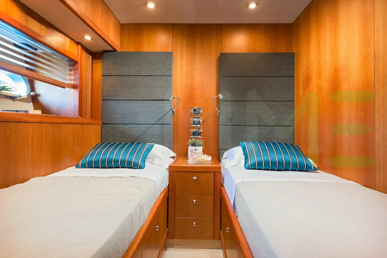 The styling of the QUANTUM yacht features exterior design by Sunseeker and interior design by Sunseeker. Up to 8 guests can be accommodated on board the superyacht QUANTUM in 4 staterooms. QUANTUM also has accommodations for 4 crew members, including the yacht’s captain.