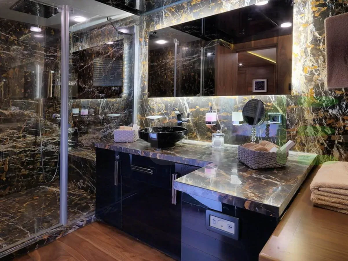 The styling of the QUEEN MARE yacht features exterior design by Alfa Marine Design and interior design by Peker Design Ltd. Up to 14 guests can be accommodated on board the superyacht QUEEN MARE in 6 staterooms. QUEEN MARE also has accommodations for 12 crew members, including the yacht’s captain.