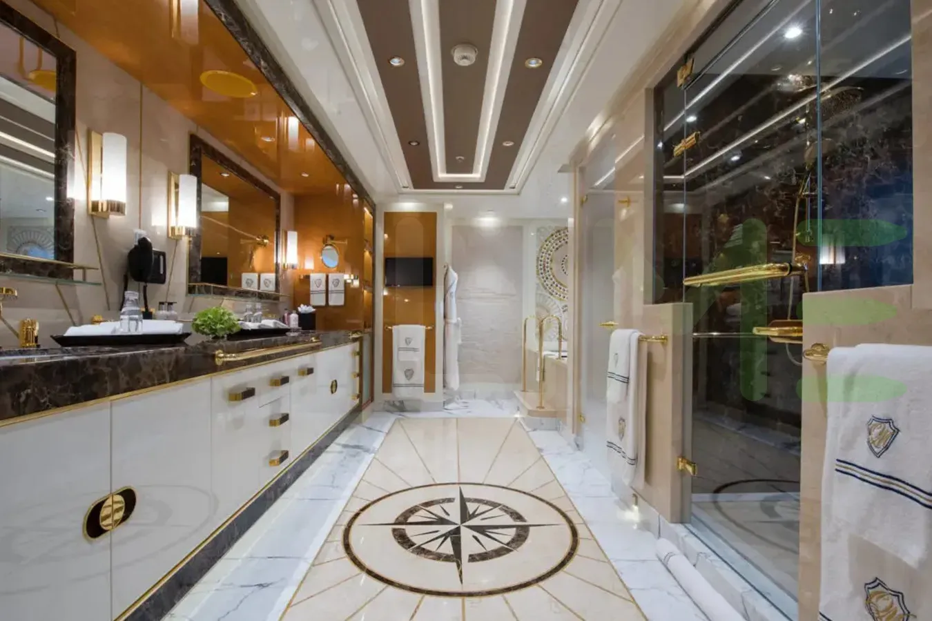 The styling of the QUEEN MIRI yacht features exterior design by Alpha Marine Ltd - Yacht Designers & Naval Architects, Lally Poulias, Bernd Weel Design and interior design by Alpha Marine Ltd - Yacht Designers & Naval Architects, Lally Poulias. Up to 36 guests can be accommodated on board the superyacht QUEEN MIRI in 18 staterooms. QUEEN MIRI also has accommodations for 36 crew members, including the yacht’s captain.