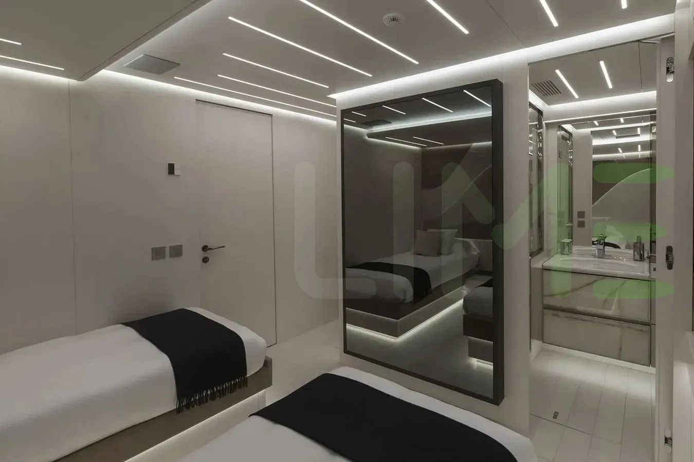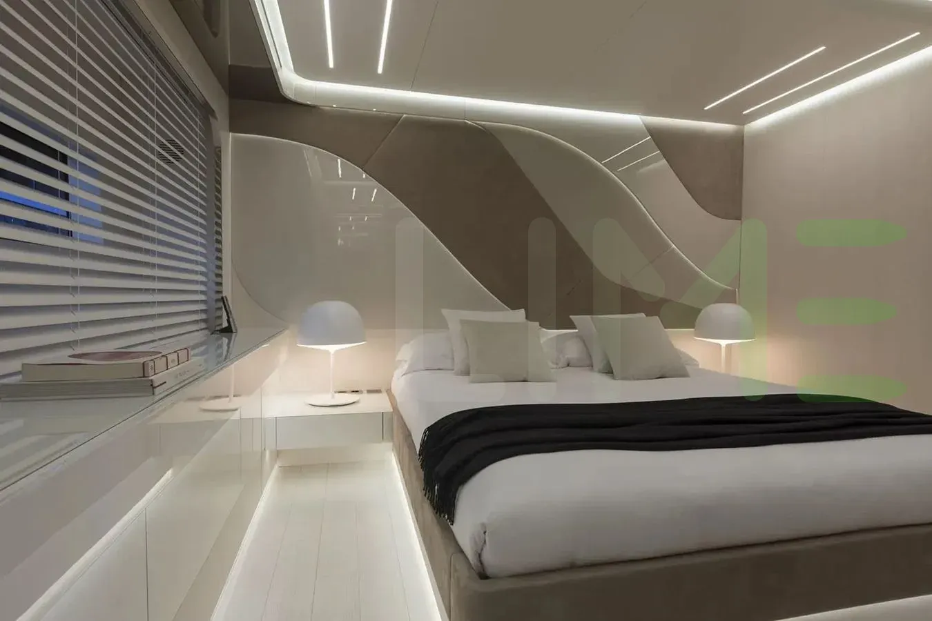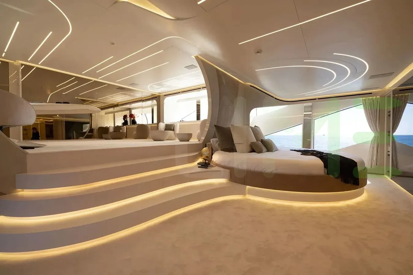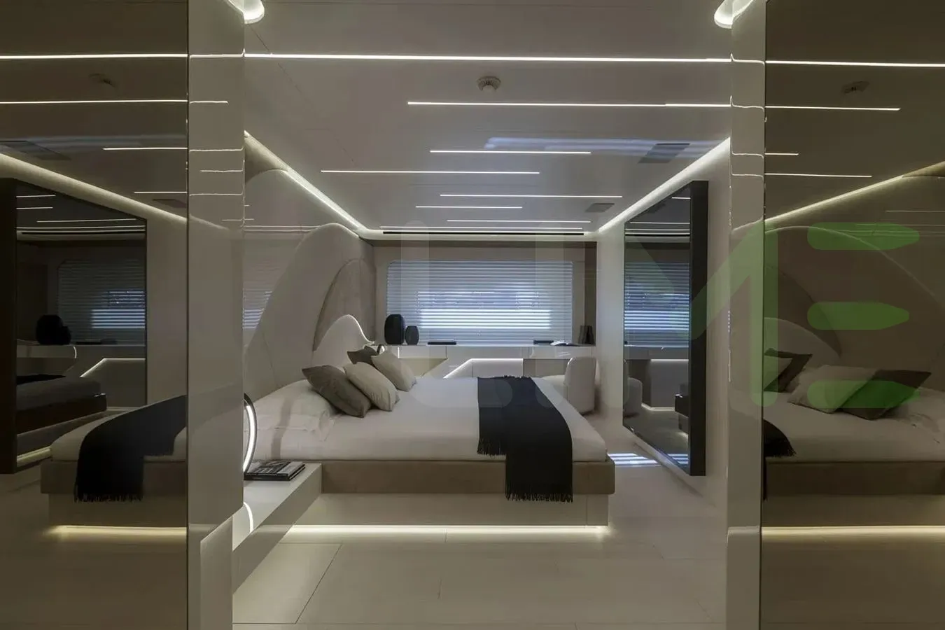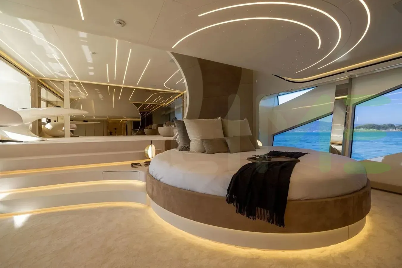 The styling of the REBELLIOUS yacht features exterior design by Lobanov Design and interior design by Overmarine Group SPA. Up to 10 guests can be accommodated on board the superyacht REBELLIOUS in 6 staterooms. REBELLIOUS also has accommodations for 10 crew members, including the yacht’s captain.