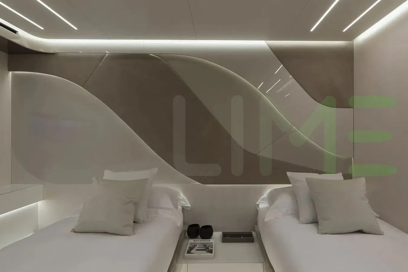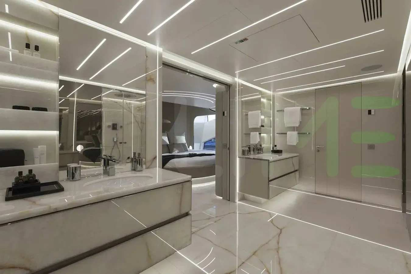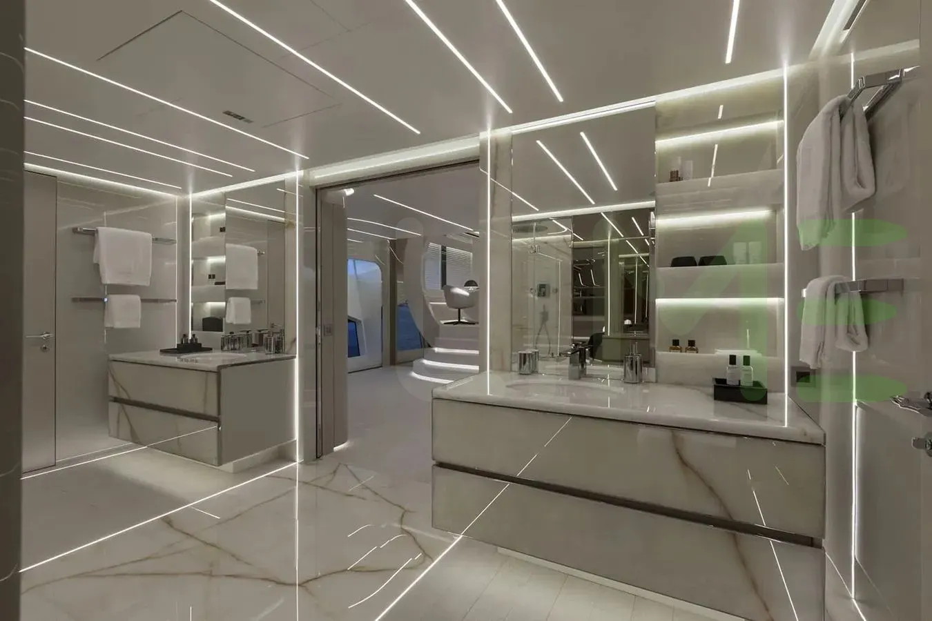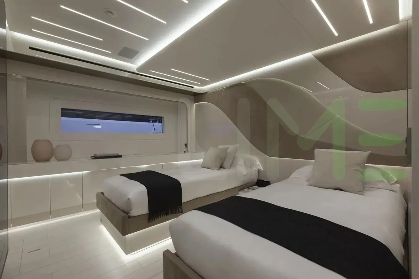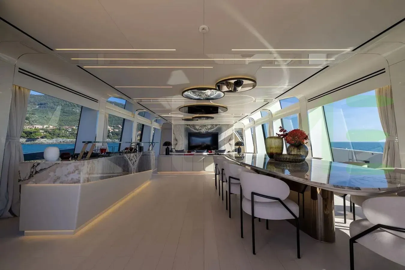 The styling of the REBELLIOUS yacht features exterior design by Lobanov Design and interior design by Overmarine Group SPA. Up to 10 guests can be accommodated on board the superyacht REBELLIOUS in 6 staterooms. REBELLIOUS also has accommodations for 10 crew members, including the yacht’s captain.