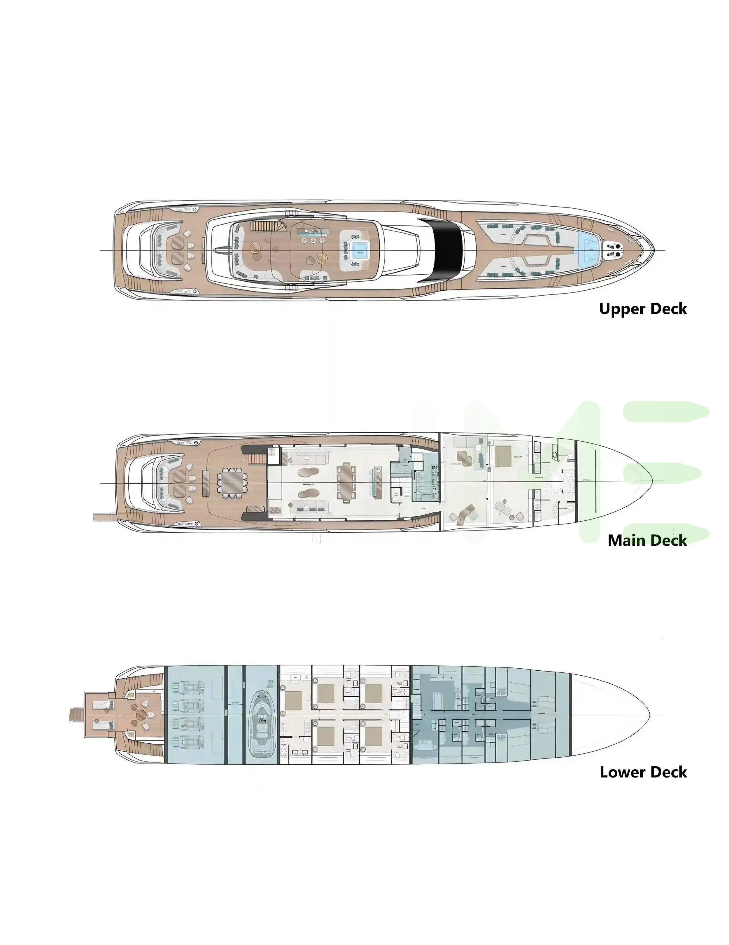 Request plans that include the layout of staterooms, guest areas, and outdoor spaces, as well as crew quarters and work areas.