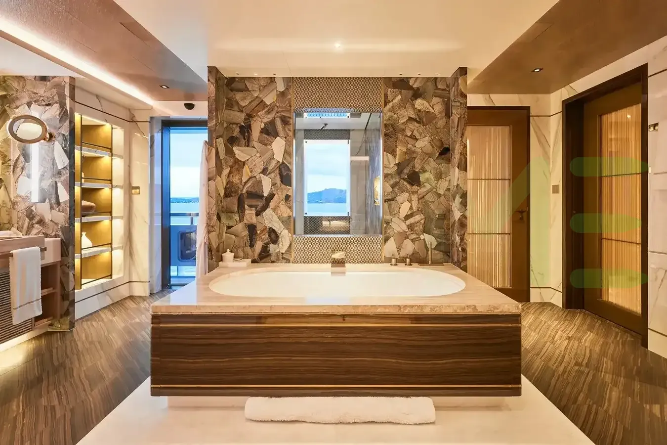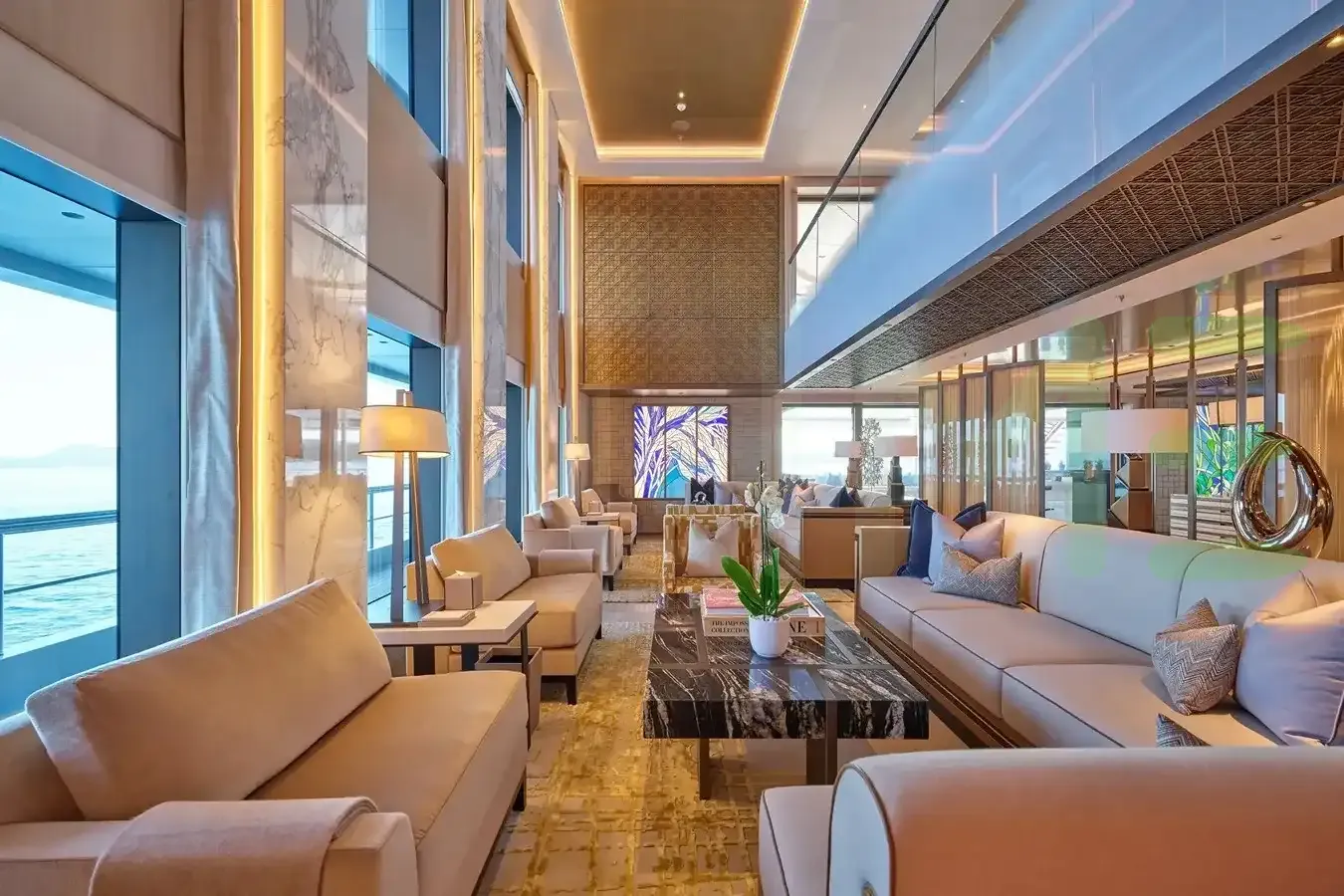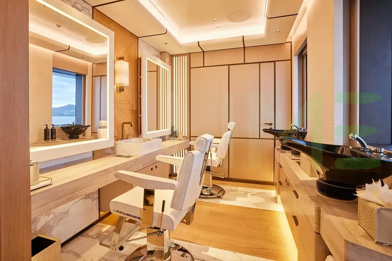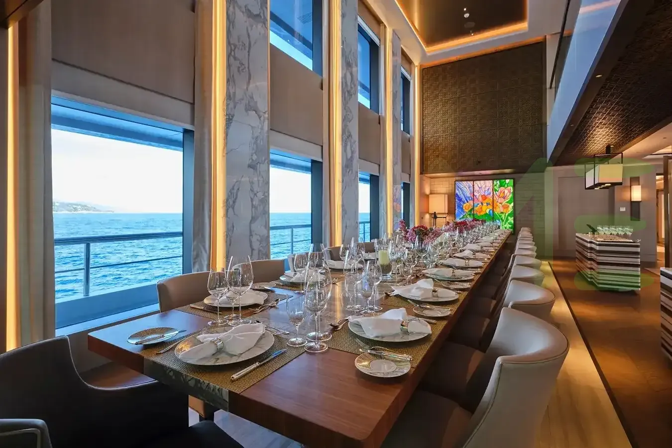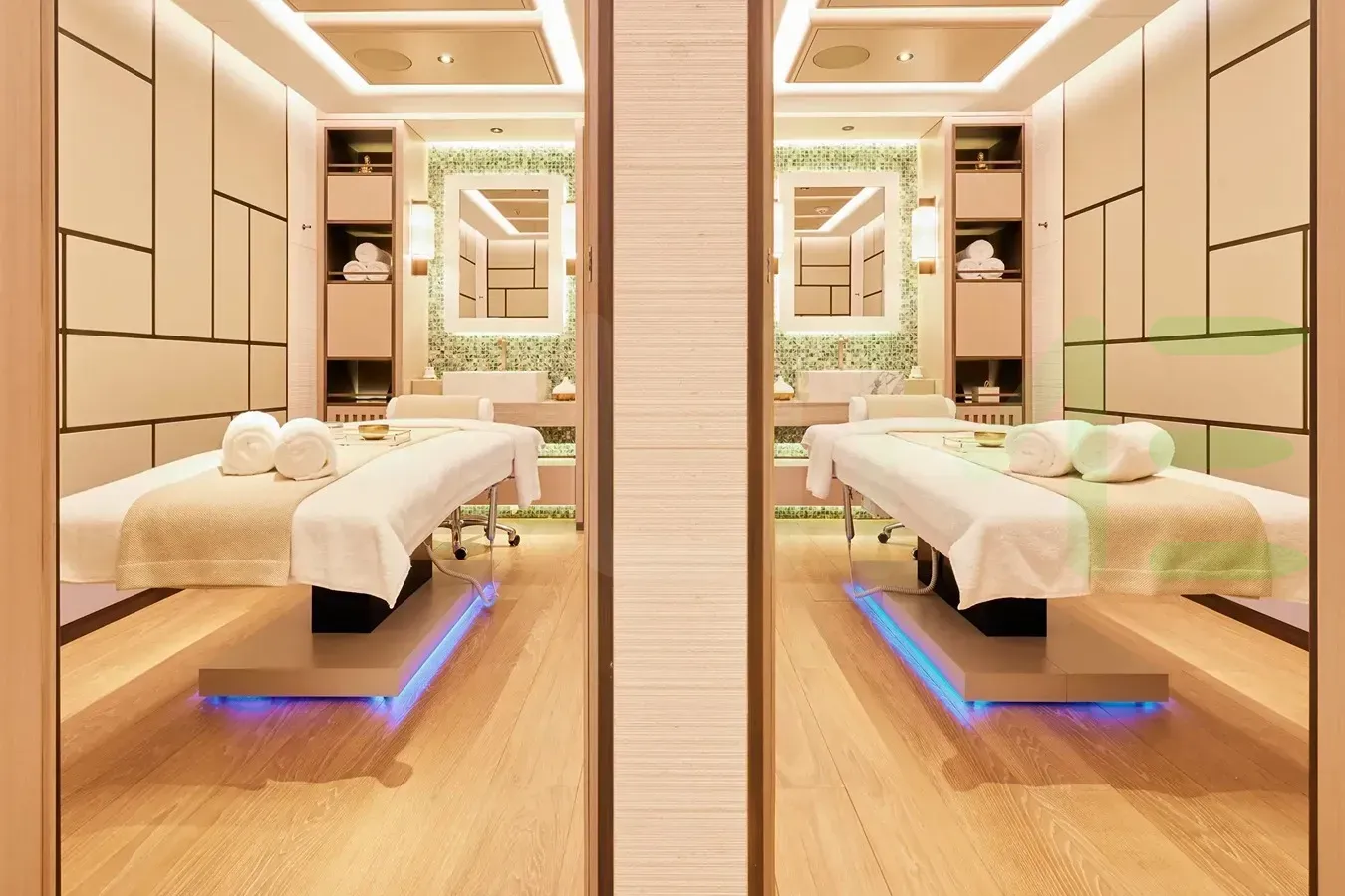 On your charter, you'll find plenty to keep you busy and entertained such as a state-of-the-art movie theatre for movie nights. Elsewhere the latest beauty and hair treatments are available in the luxurious beauty room plus the steam room is great for your skin and a perfect place to unwind. Take the opportunity to be thoroughly pampered and indulged in the spa and in addition revive yourself after an intense workout in the sauna. The swimming pool is perfect for exercising or admiring a romantic sunrise. Make your day truly exceptional at the beach club or a gym with all the latest equipment is available for a good work out. Sit back with a glass of champagne in the deck jacuzzi.