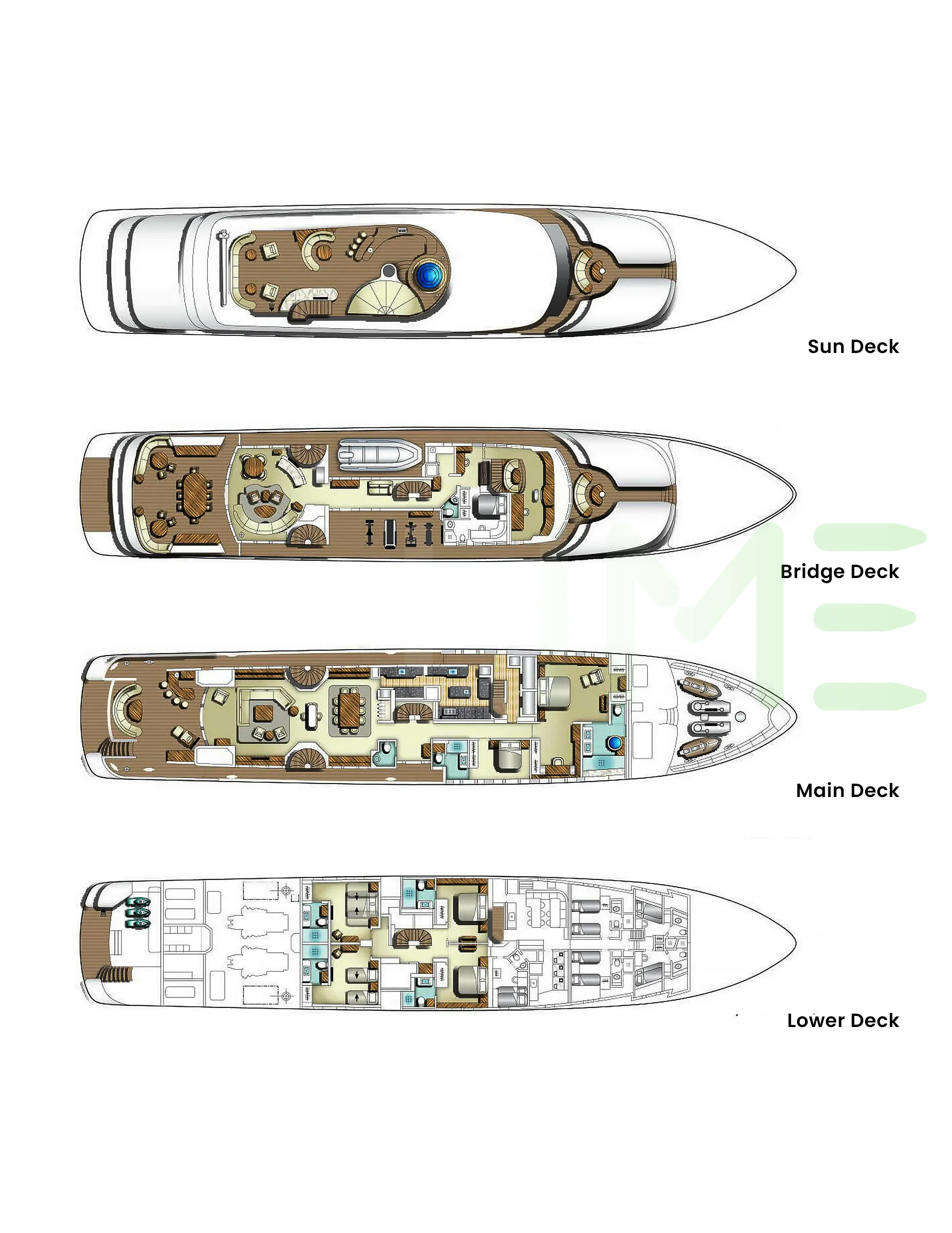 Request plans that include the layout of staterooms, guest areas, and outdoor spaces, as well as crew quarters and work areas.