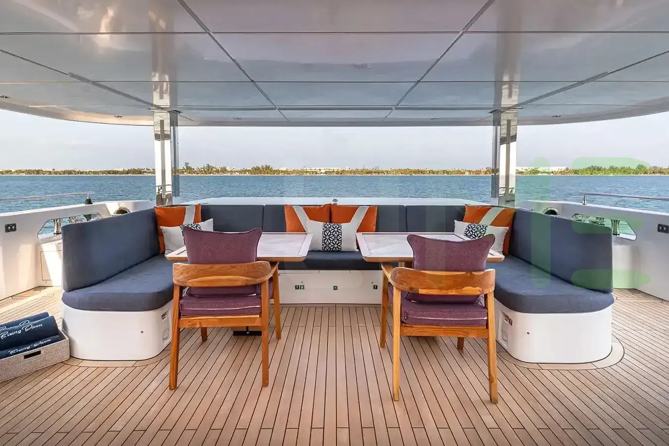 Measuring in at a length of 141' 5" (43.1m) and boasting a beam of 26' 11" (8.2m), RISING DAWN's grandeur is matched only by her spaciousness.