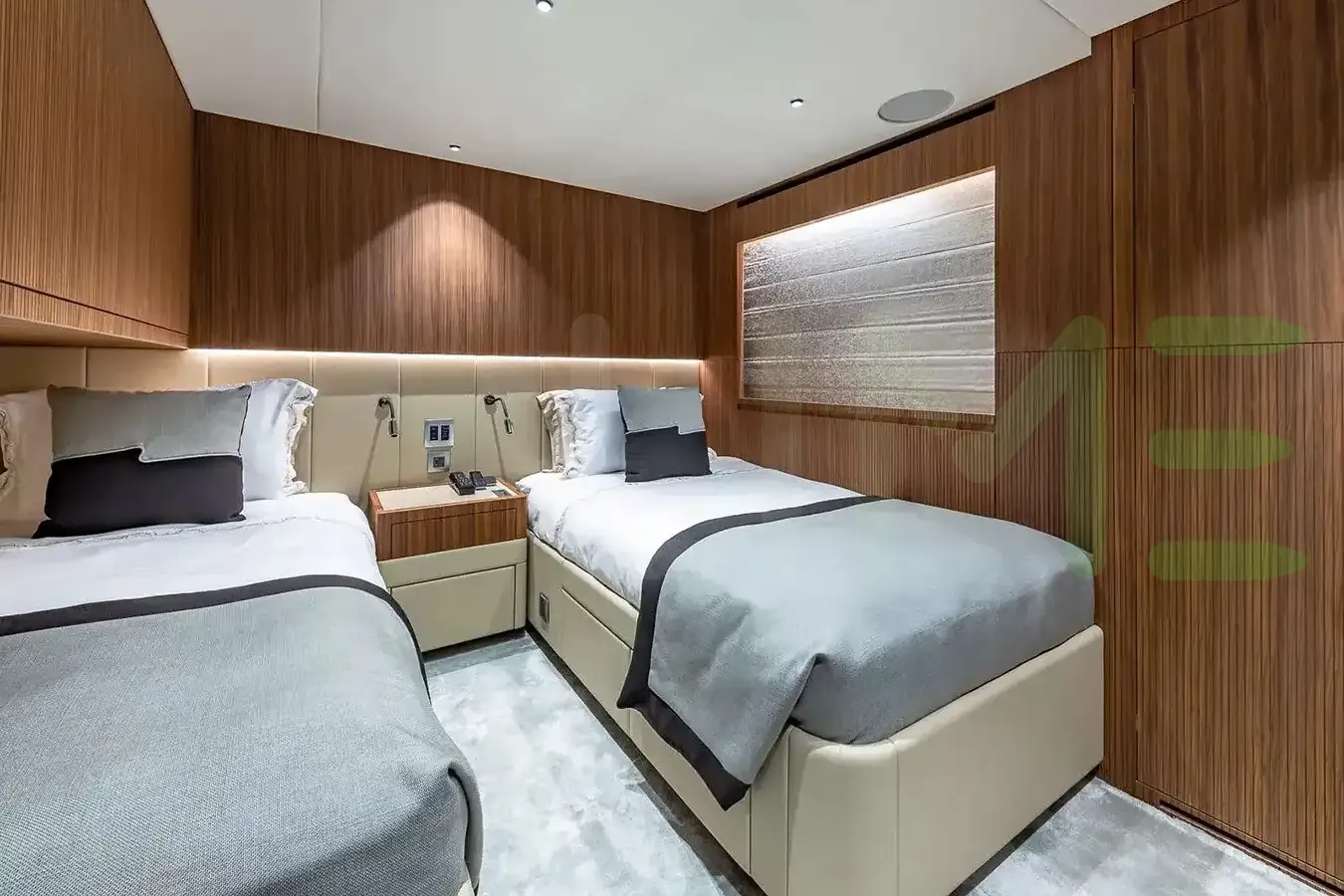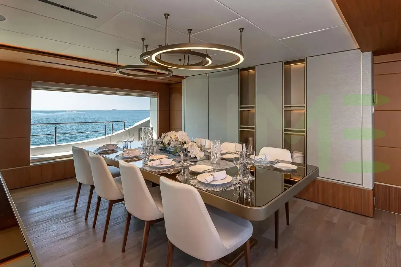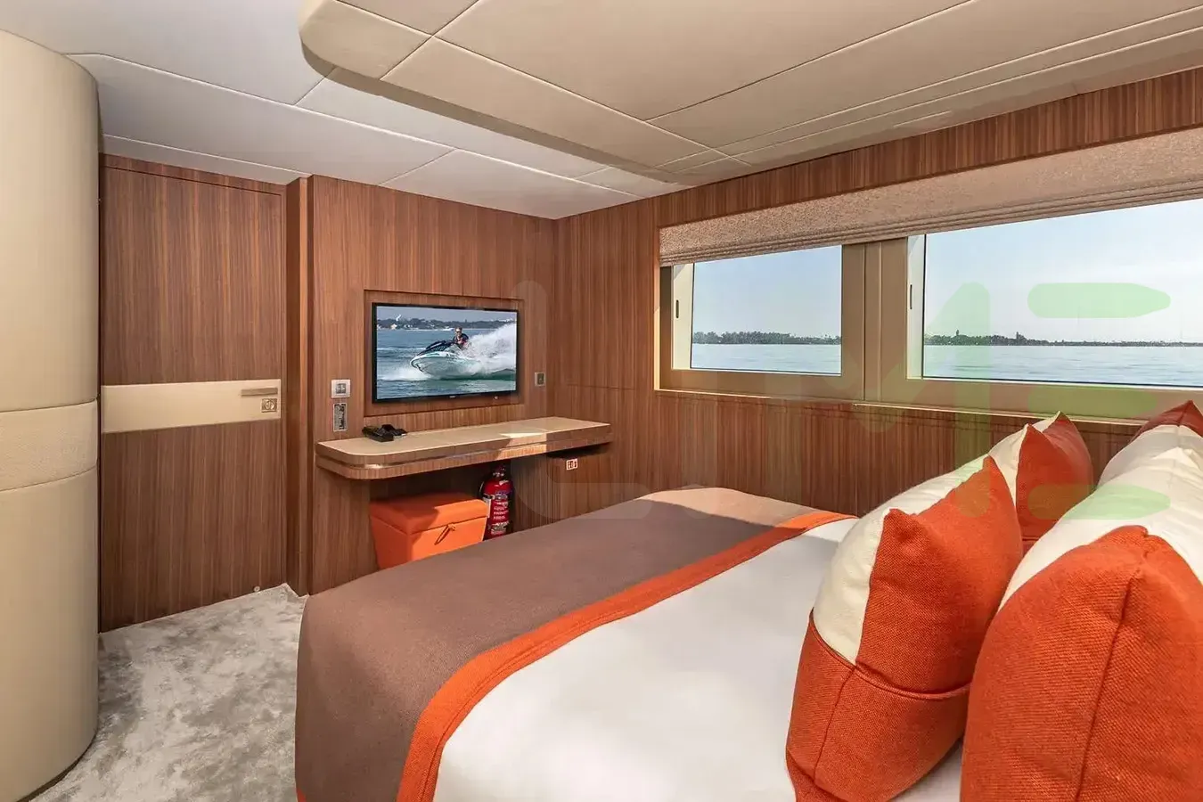 The styling of the RISING DAWN yacht features exterior design by Gulf Craft and interior design by Cristiano Gatto Design. Up to 12 guests can be accommodated on board the superyacht RISING DAWN in 6 staterooms. RISING DAWN also has accommodations for 9 crew members, including the yacht’s captain.