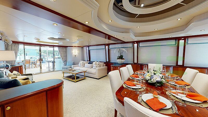 The styling of the RISK & REWARD yacht features exterior design by Jack Sarin Naval Architects, Inc. and interior design by Robin Rose & Associates. Up to 9 guests can be accommodated on board the superyacht RISK & REWARD in 4 staterooms. RISK & REWARD also has accommodations for 5 crew members, including the yacht’s captain.