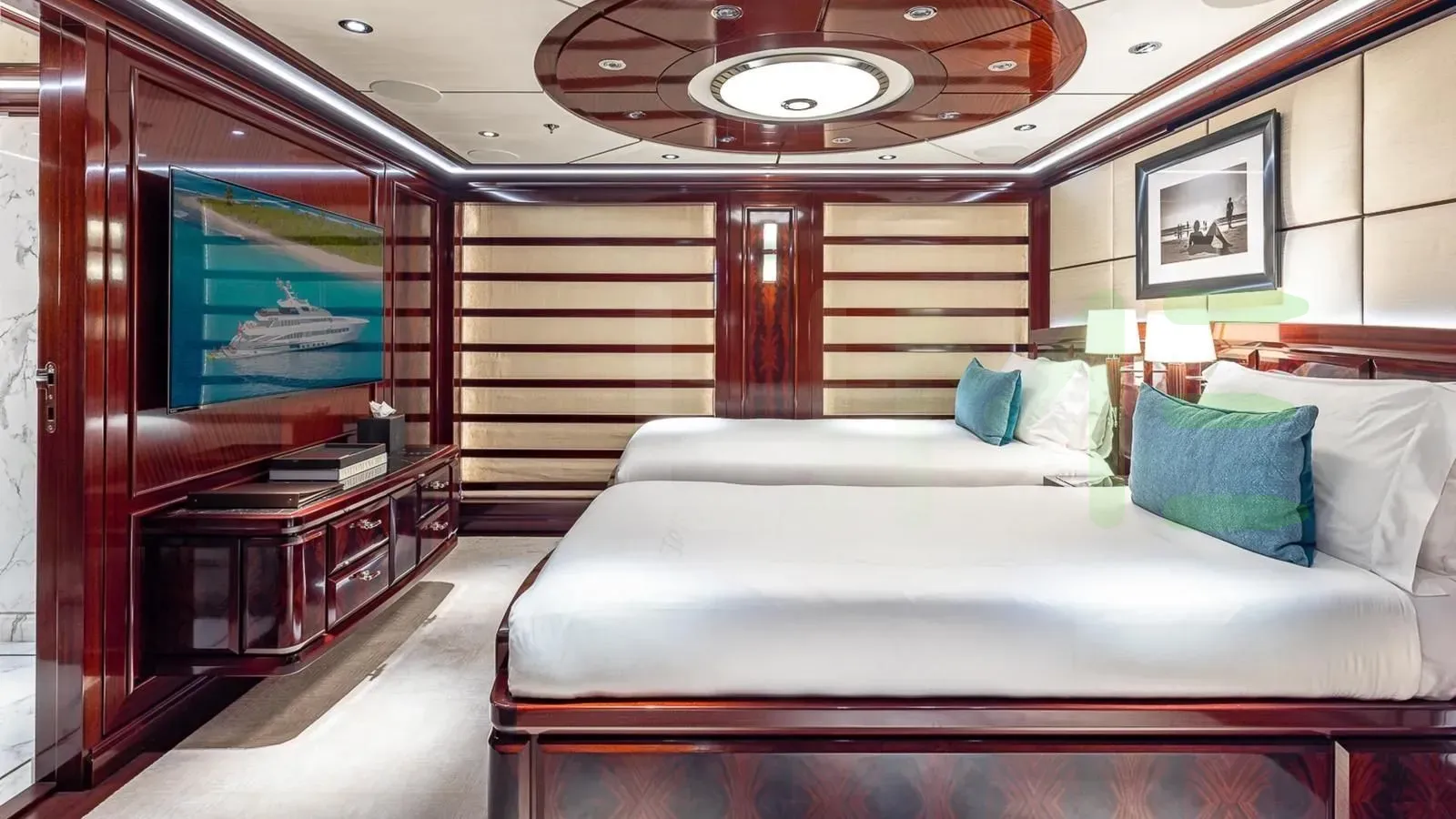 - Master stateroom en suite with marble sink and floors