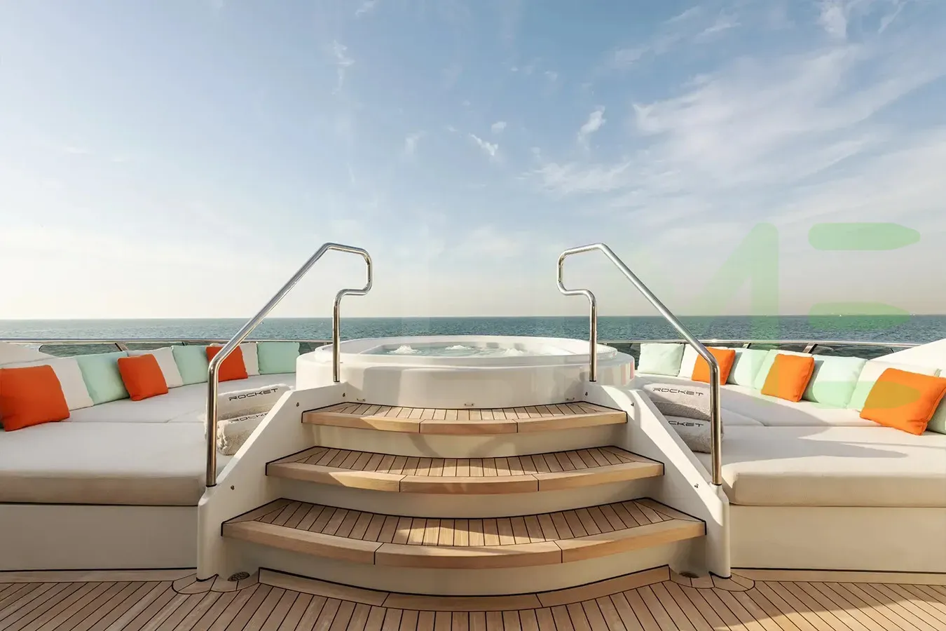 A charter on Rocket is comfortable and convenient thanks to the provided amenities, notably a deck jacuzzi, perfect to enjoy the scenery with your favourite drink in hand.