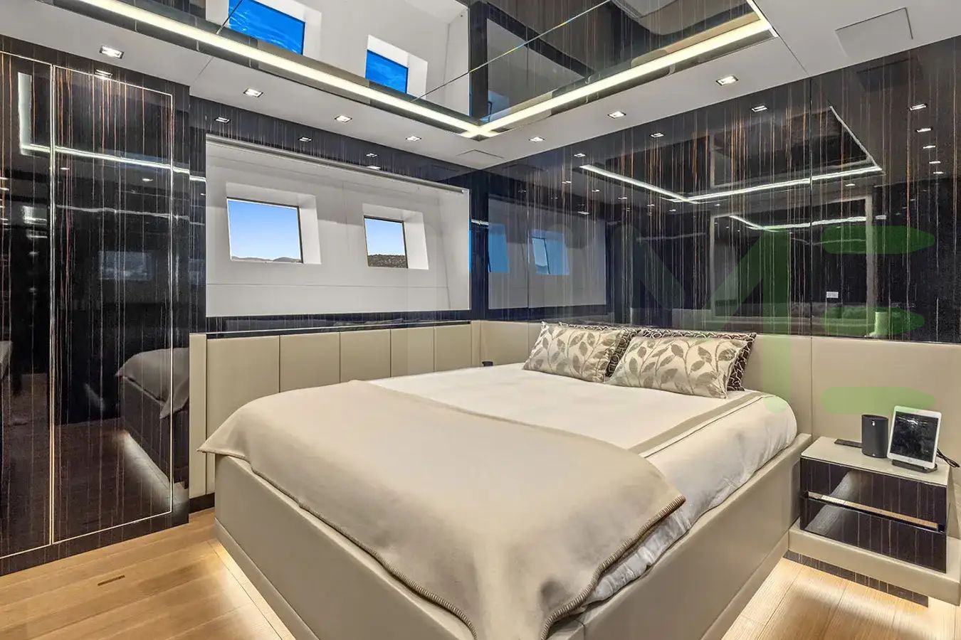 Up to 10 guests can be accommodated on board the superyacht RR in 5 staterooms. RR also has accommodations for 7 crew members, including the yacht’s captain.