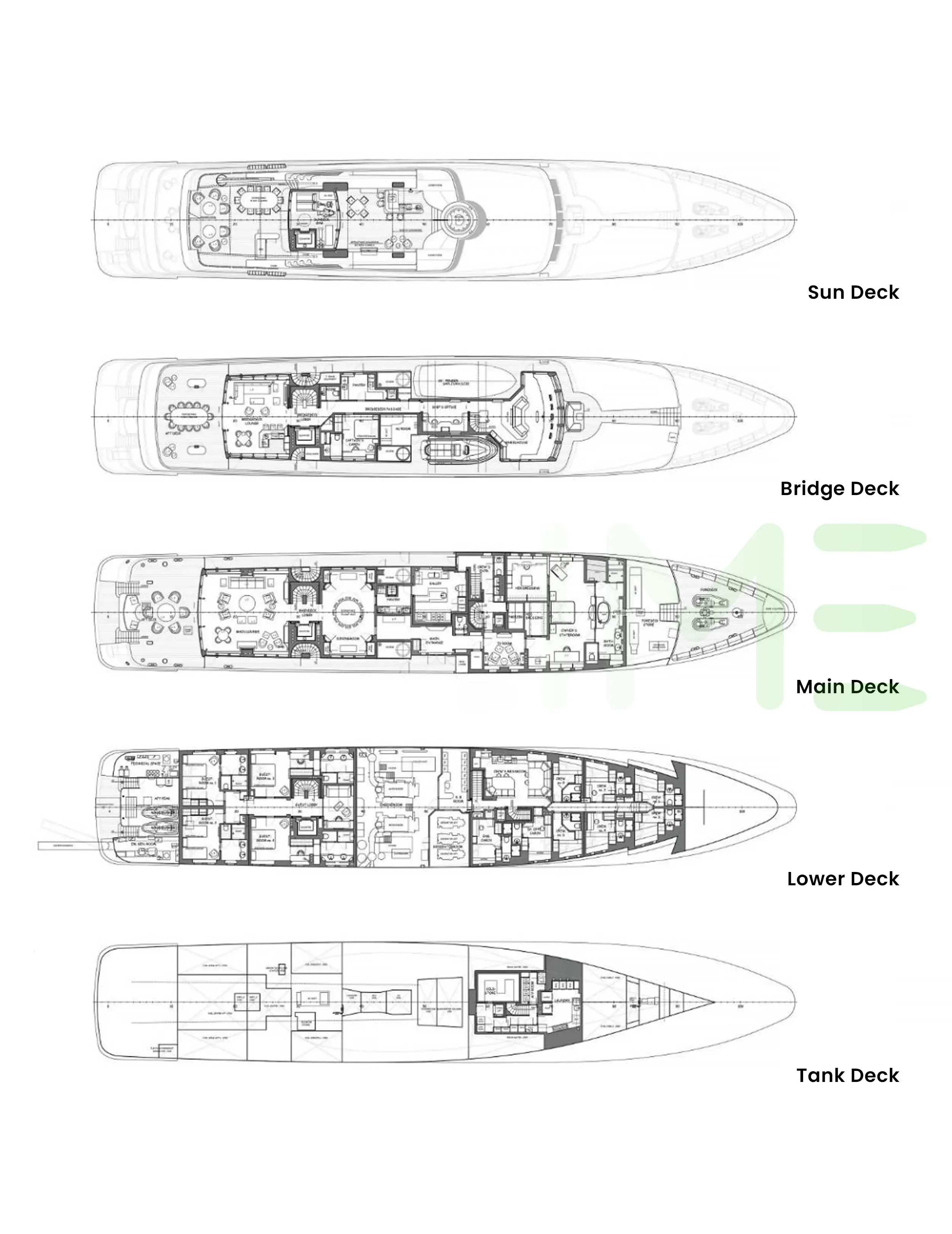 Request plans that include the layout of staterooms, guest areas, and outdoor spaces, as well as crew quarters and work areas.