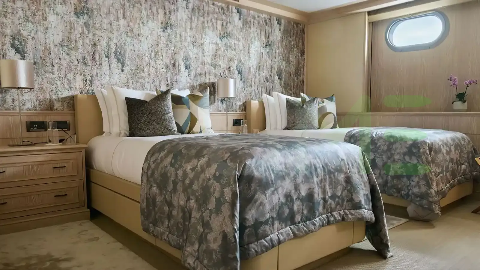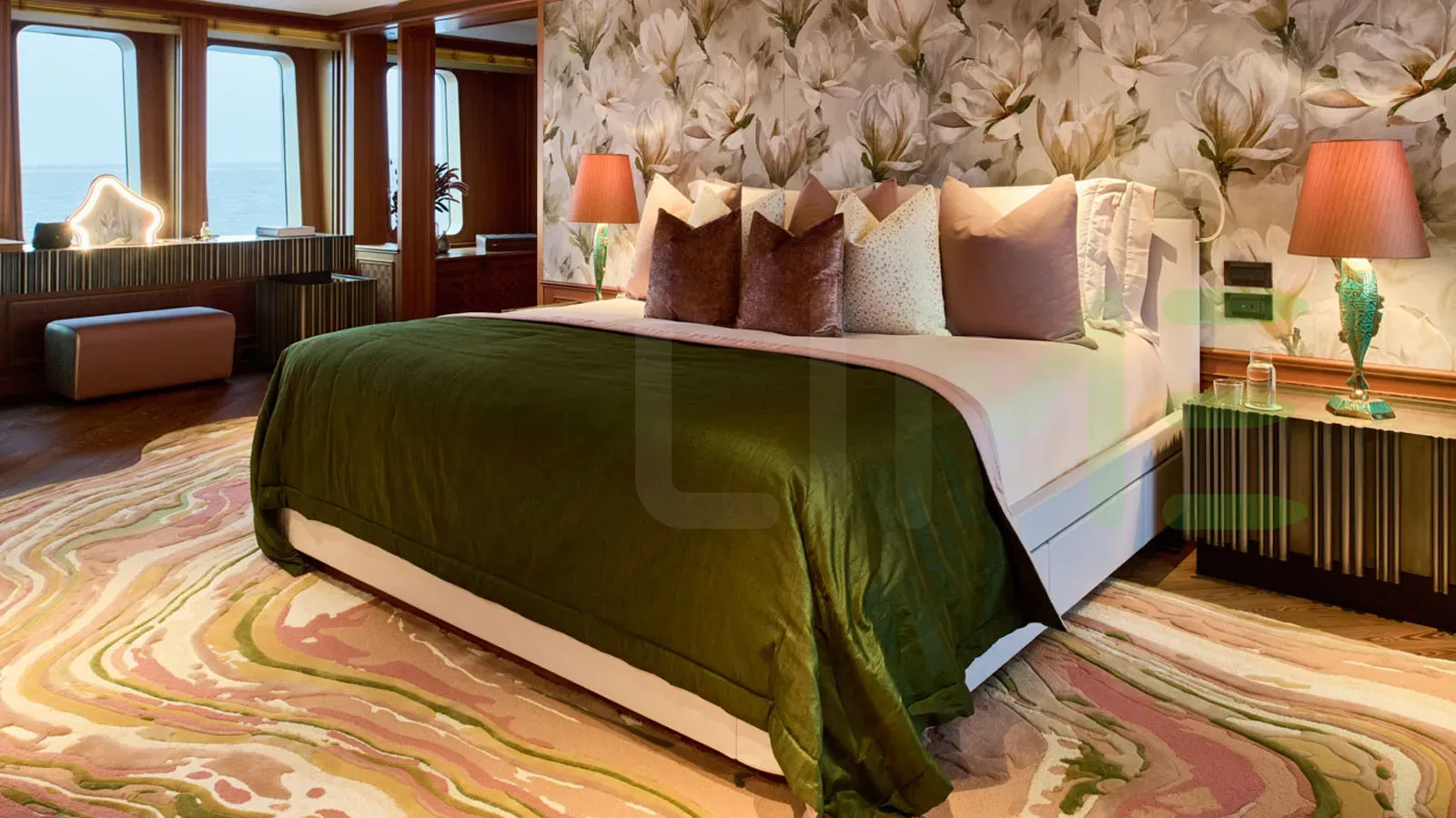 The styling of the SAMADHI yacht features exterior design by De Voogt Naval Architects and interior design by Luxury Projects, Rémi Tessier, Larvor. Up to 12 guests can be accommodated on board the superyacht SAMADHI in 5 staterooms. SAMADHI also has accommodations for 16 crew members, including the yacht’s captain.