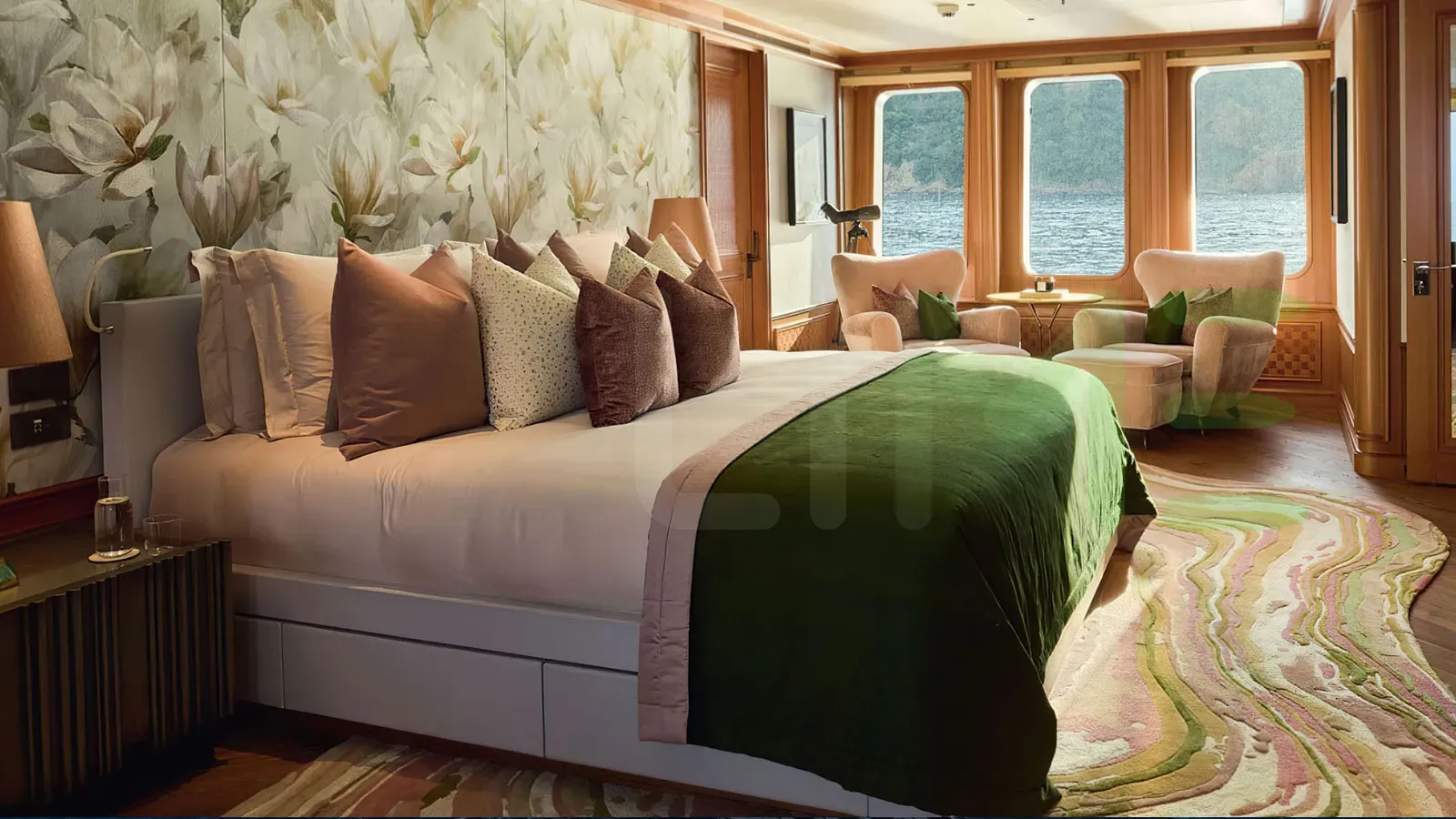 Measuring in at a length of 200' (60.96m) and boasting a beam of 35' 9" (10.9m), SAMADHI's grandeur is matched only by her spaciousness. Her draft of 10' 10" (3.3m) allows for an interior volume of 1,036 GRT (gross registered tons) which contributes to her exceptional performance on the open ocean.