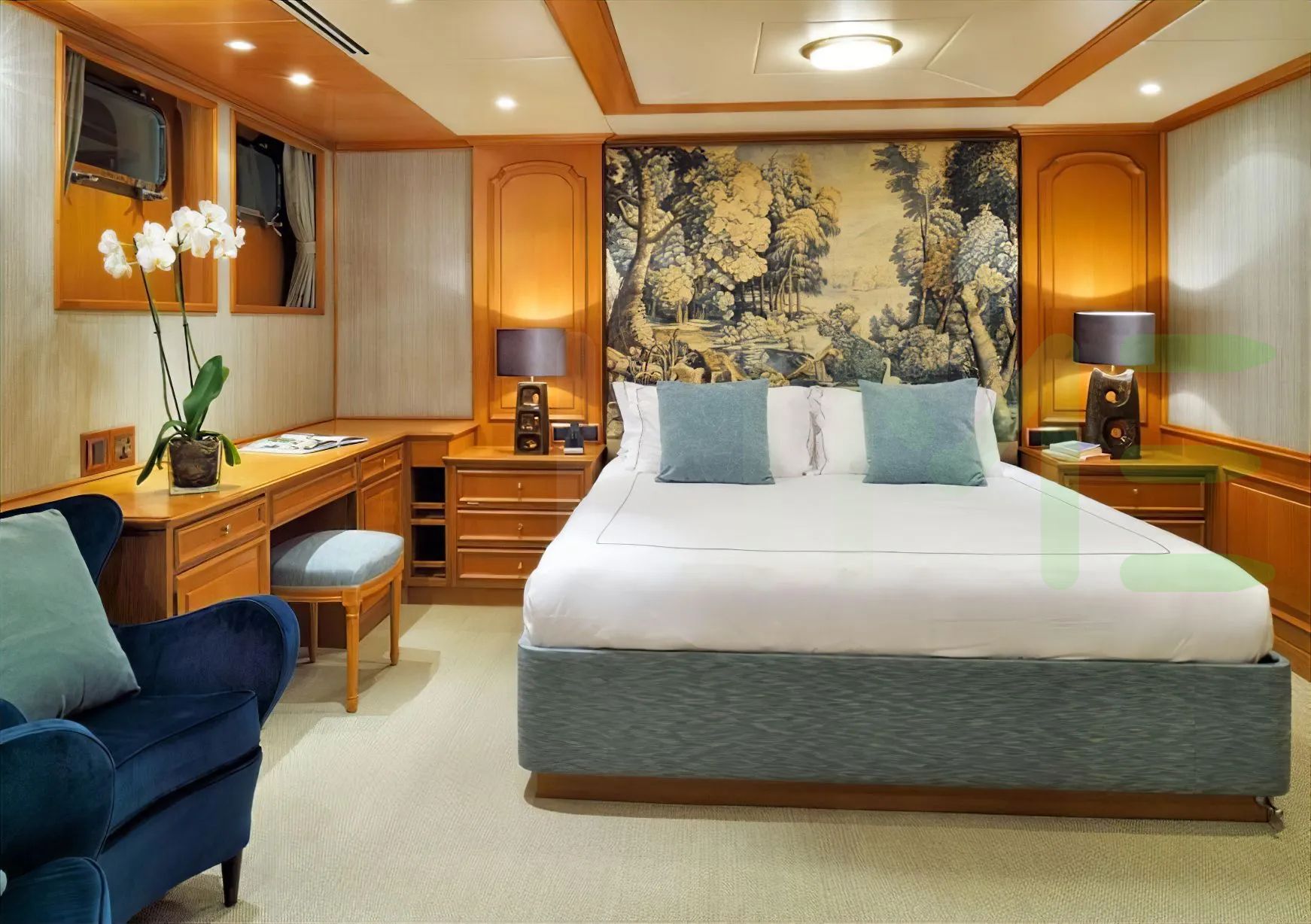 The styling of the SANOO yacht features exterior design by De Voogt Naval Architects and interior design by Larvor. Up to 16 guests can be accommodated on board the superyacht SANOO in 8 staterooms. SANOO also has accommodations for 20 crew members, including the yacht’s captain.