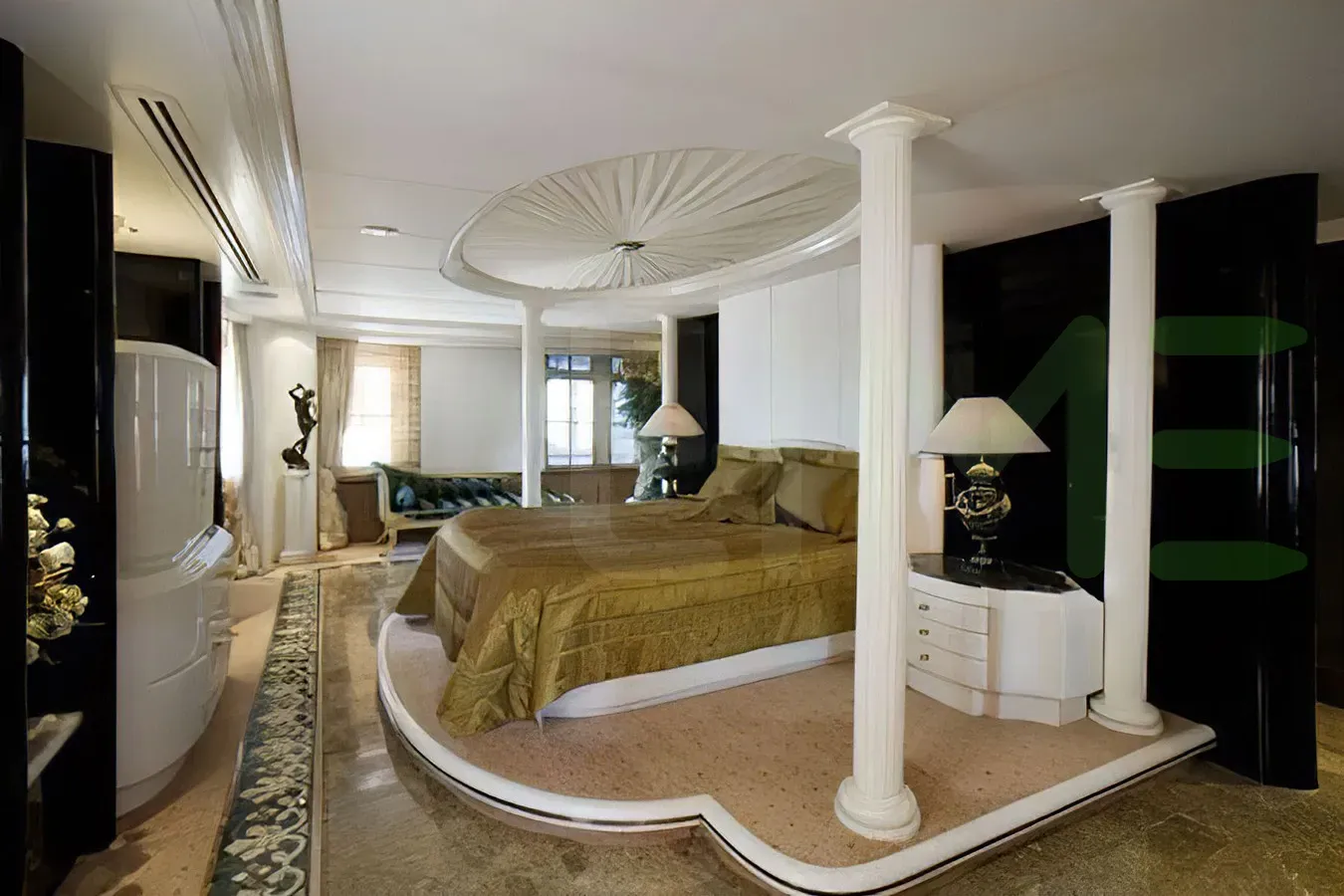 Her features include steam room, movie theatre, beauty salon, elevator, gym, deck jacuzzi and air conditioning.
