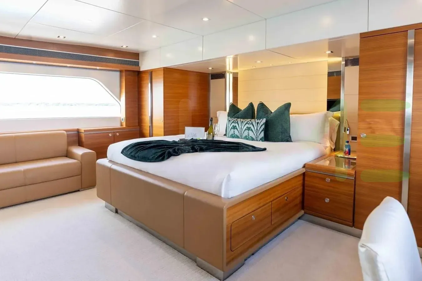 The styling of the SEA AXIS yacht features exterior design by Mulder Design and interior design by Art Line. Up to 12 guests can be accommodated on board the superyacht SEA AXIS in 5 staterooms. SEA AXIS also has accommodations for 7 crew members, including the yacht’s captain.
