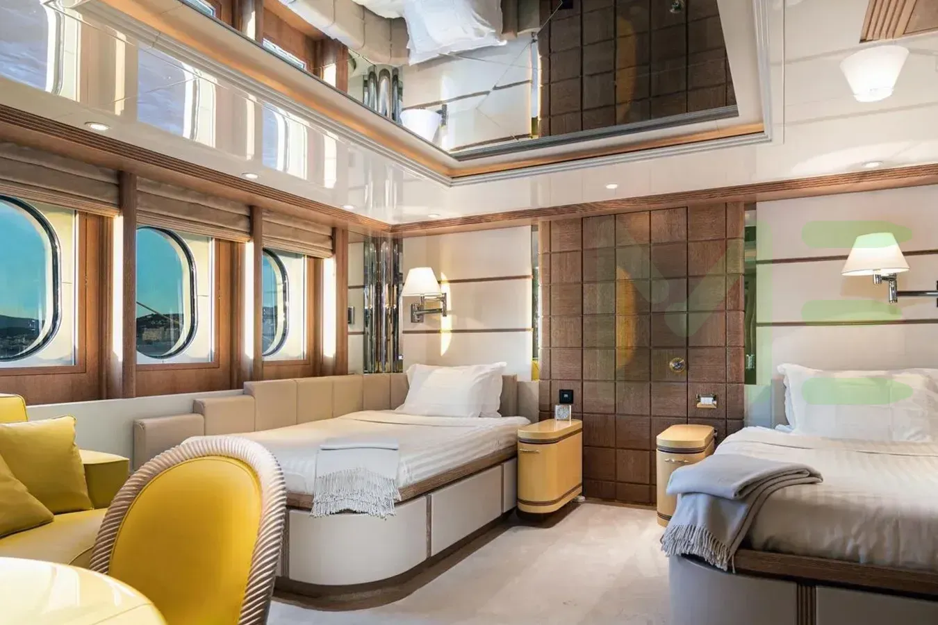 Her features include sauna, gym, deck jacuzzi, WiFi and air conditioning.