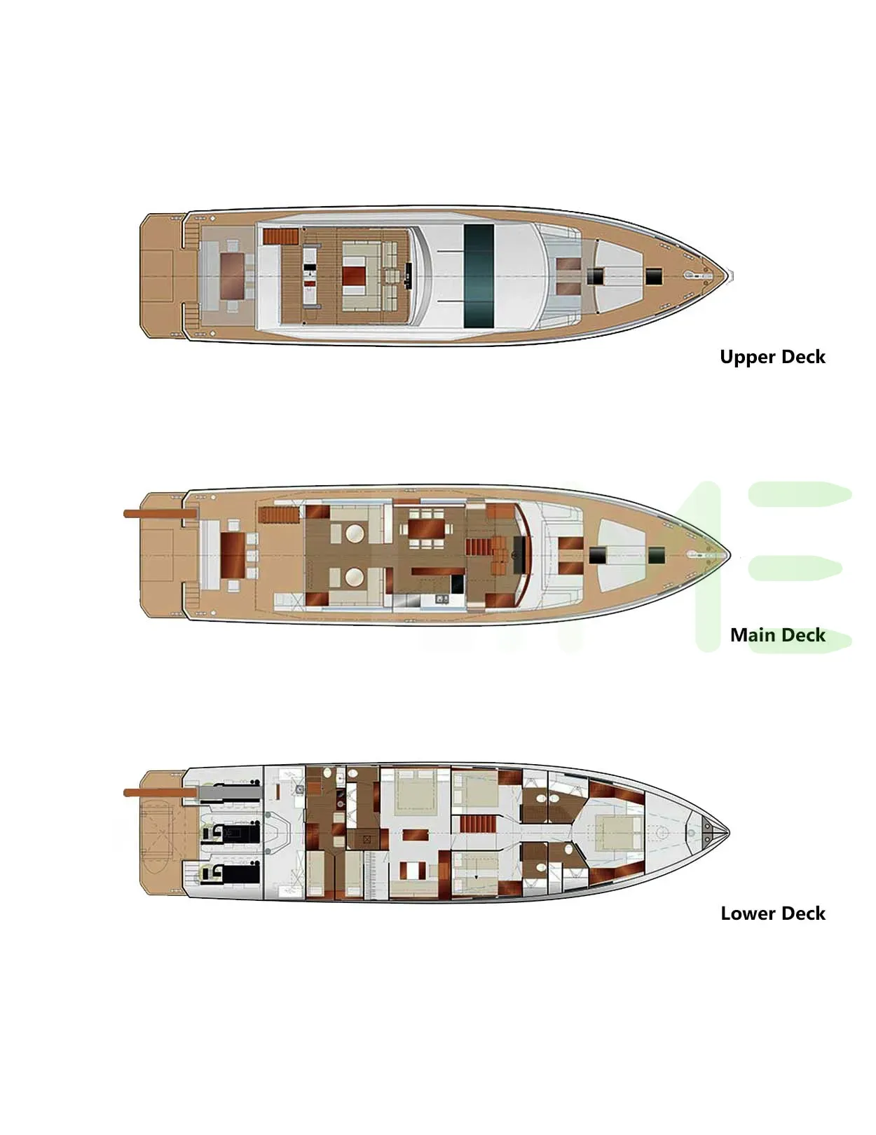 Request plans that include the layout of staterooms, guest areas, and outdoor spaces, as well as crew quarters and work areas.