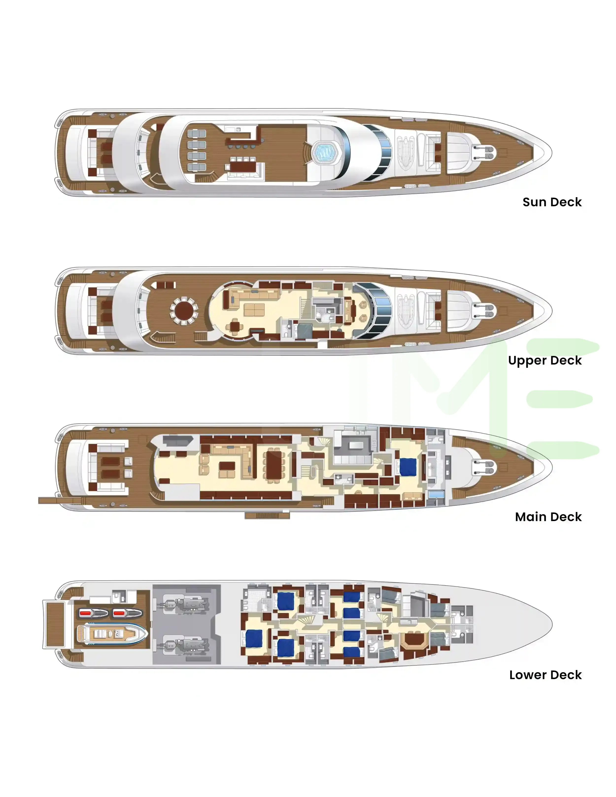 Request plans that include the layout of staterooms, guest areas, and outdoor spaces, as well as crew quarters and work areas.