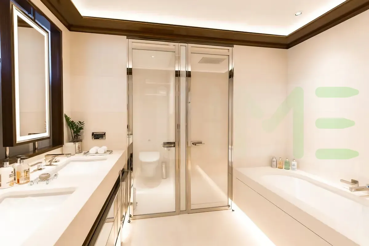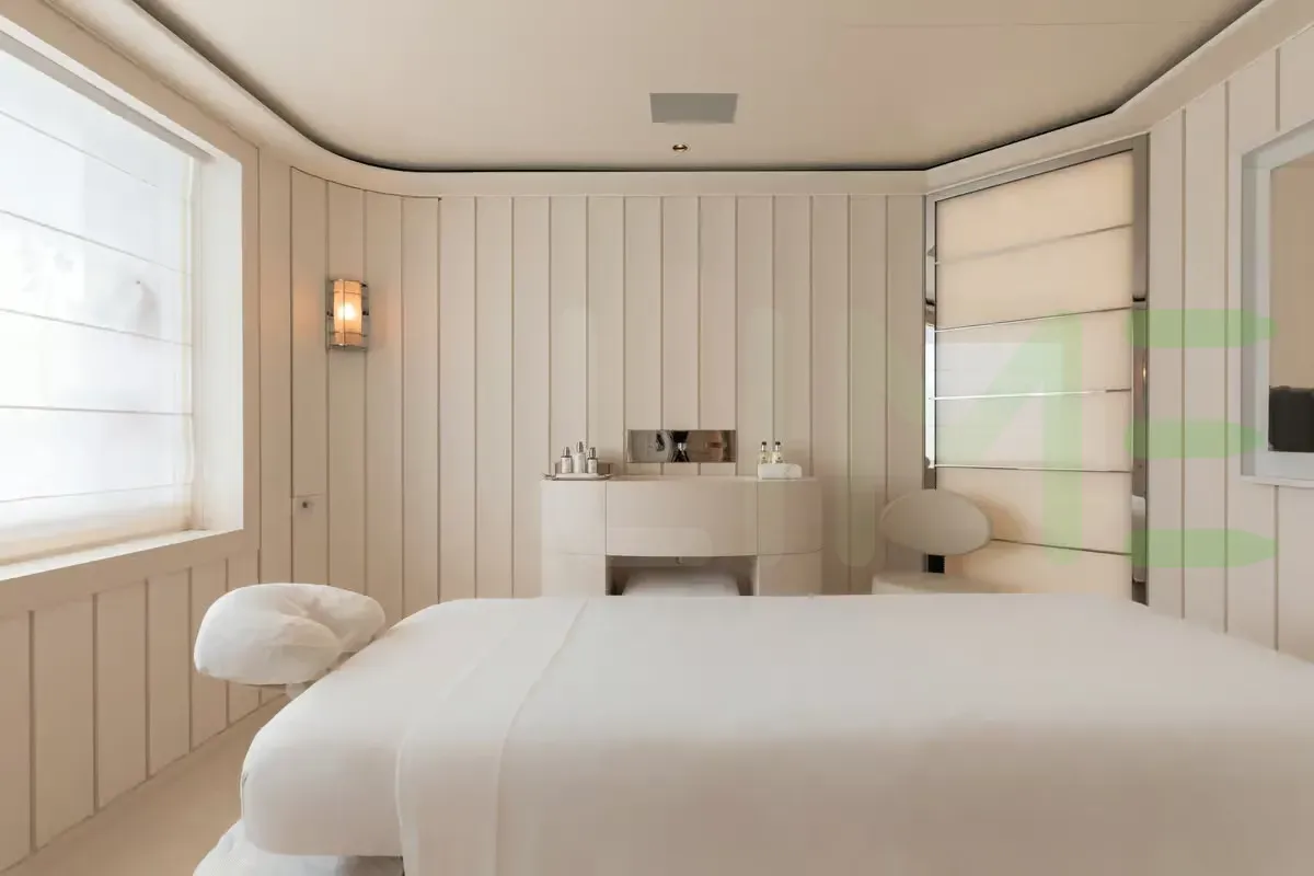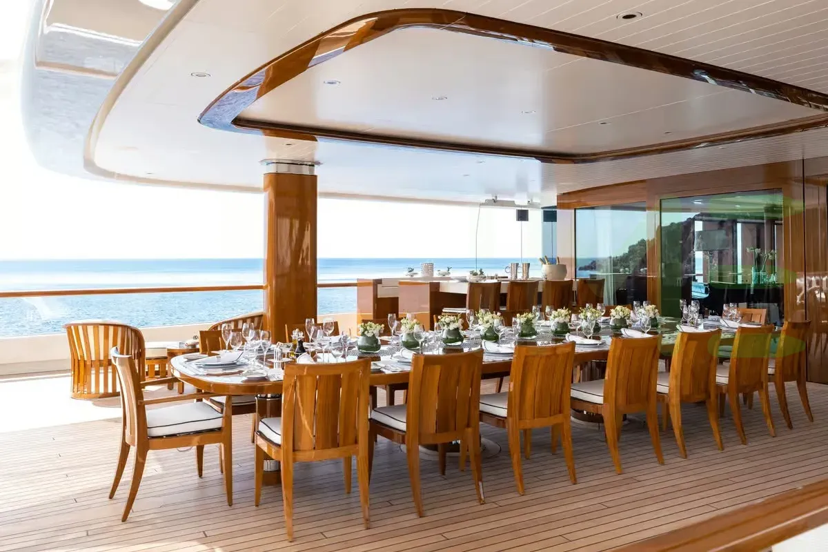 Keeping comfortable and entertained on Faith is easy thanks to the available amenities, particularly a stunning fireplace, providing the perfect place to curl up and relax. A piano is also present to create a fantastic atmosphere or elsewhere, the yacht's library is a beautiful addition to her range of leisure facilities, and acts as a lovely spot for relaxing or browsing. Alternatively Faith boasts a movie theatre, perfect to relax after a long day on the water. The steam room is great for your skin and a perfect place to unwind and in addition kick back and relax in the well-appointed spa. Guests can enjoy a dip in the pool or head to the beach club and take advantage of indoor-outdoor living and entertaining. A gym with all the latest equipment is available for a good work out.