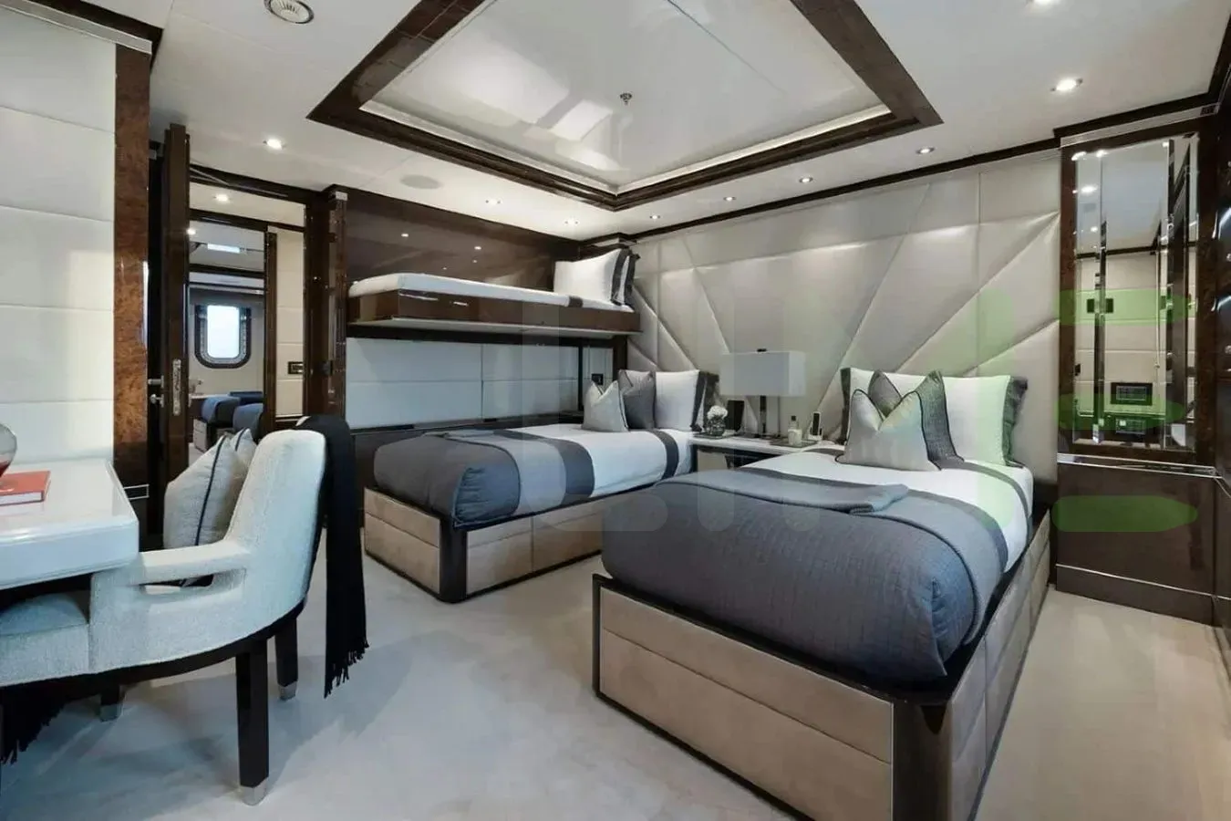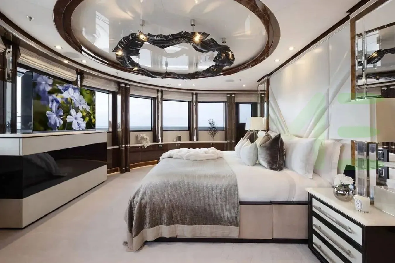 The styling of the SOUNDWAVE yacht features exterior design by Benetti SpA and interior design by Candy & Candy. Up to 14 guests can be accommodated on board the superyacht SOUNDWAVE in 6 staterooms. SOUNDWAVE also has accommodations for 21 crew members, including the yacht’s captain.