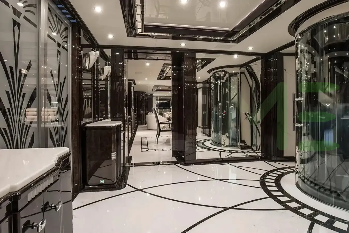 Her features include beauty salon, elevator, underwater lights, beach club, gym, WiFi and air conditioning.