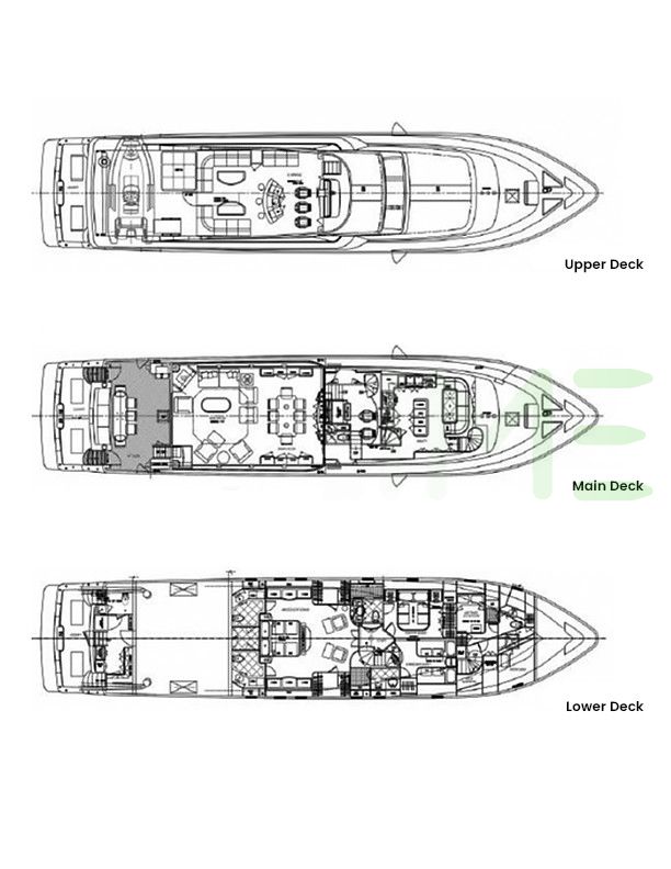 Request plans that include the layout of staterooms, guest areas, and outdoor spaces, as well as crew quarters and work areas.