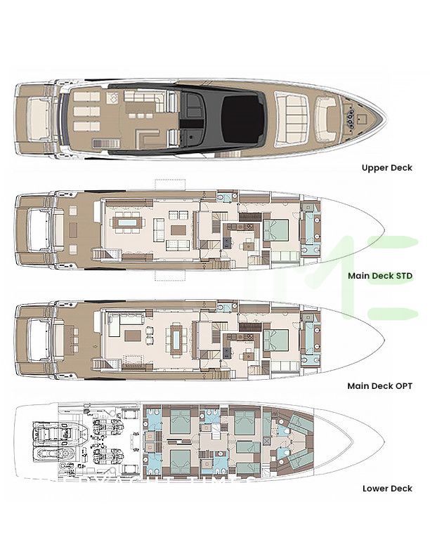 Request plans that include the layout of staterooms, guest areas, and outdoor spaces, as well as crew quarters and work areas.