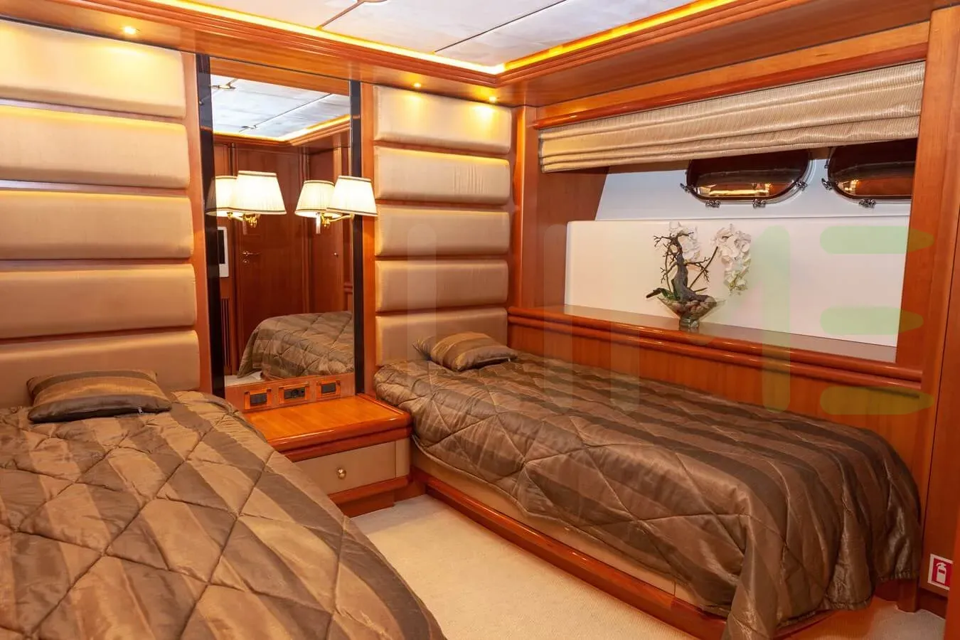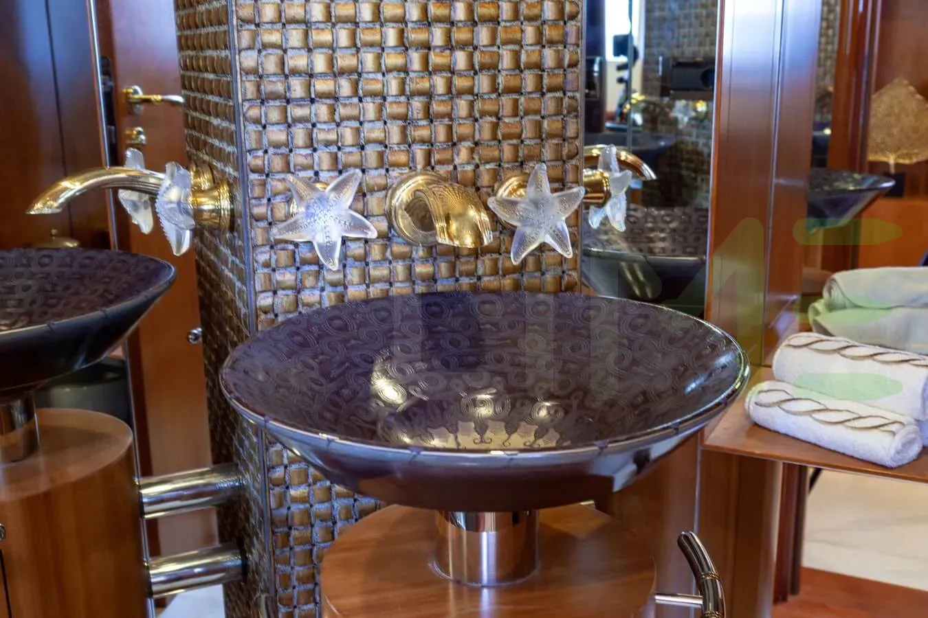 Up to 10 guests can be accommodated on board the superyacht SUNRISE in 5 staterooms. SUNRISE also has accommodations for 5 crew members, including the yacht’s captain.