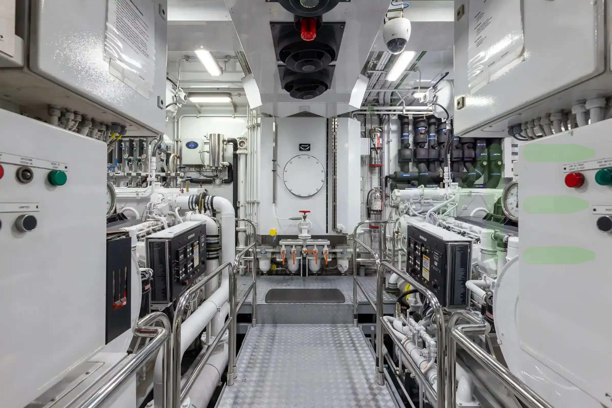 Powered by two Caterpillar main engines, each generating 1,499 horsepower, for a total combined output of 2,998 horsepower. Notably, the SUPERNOVA yacht is one of 2,691 yachts greater than 65’(19m) with Caterpillar engines.
