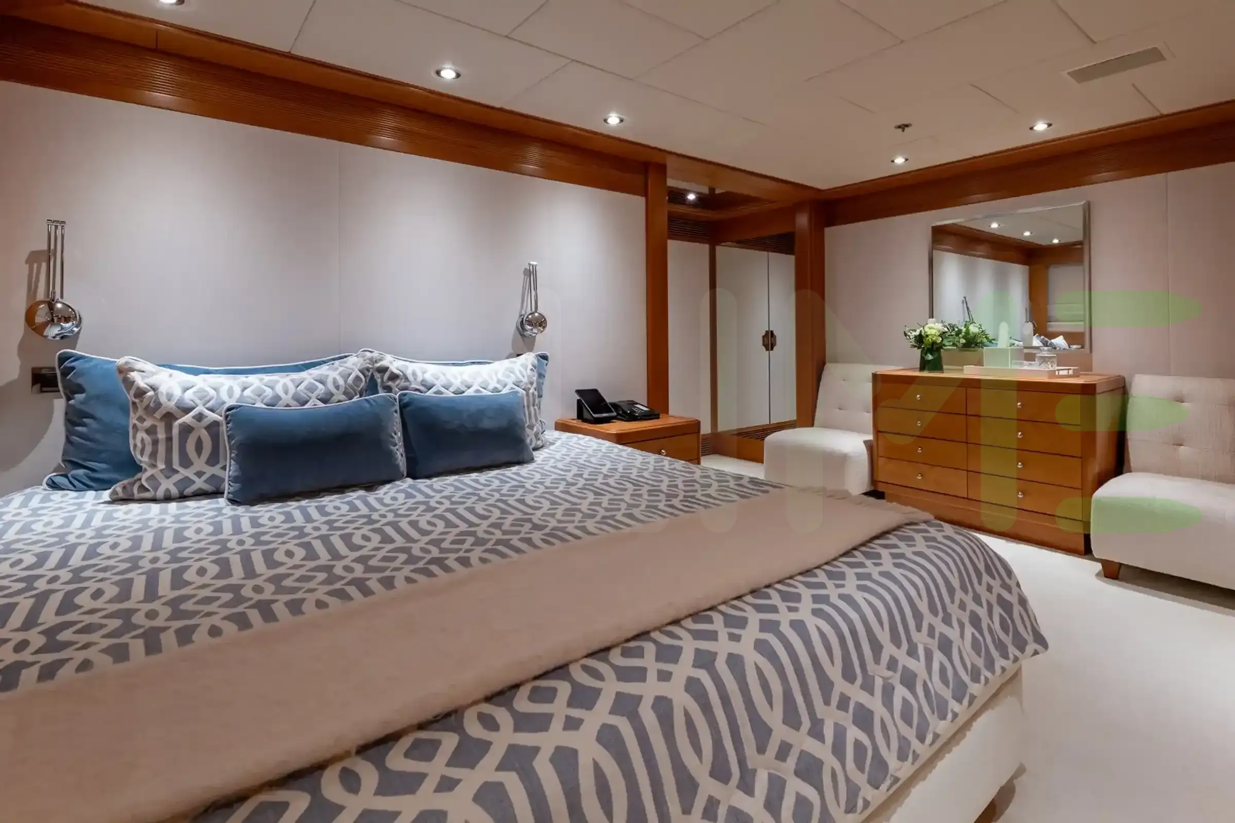 - Full-beam master cabin with dressing room and study