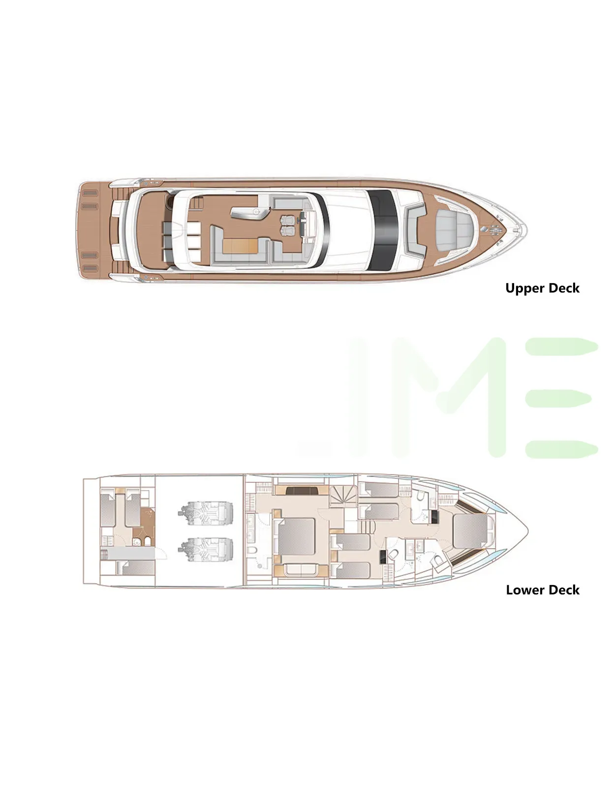 Request plans that include the layout of staterooms, guest areas, and outdoor spaces, as well as crew quarters and work areas.