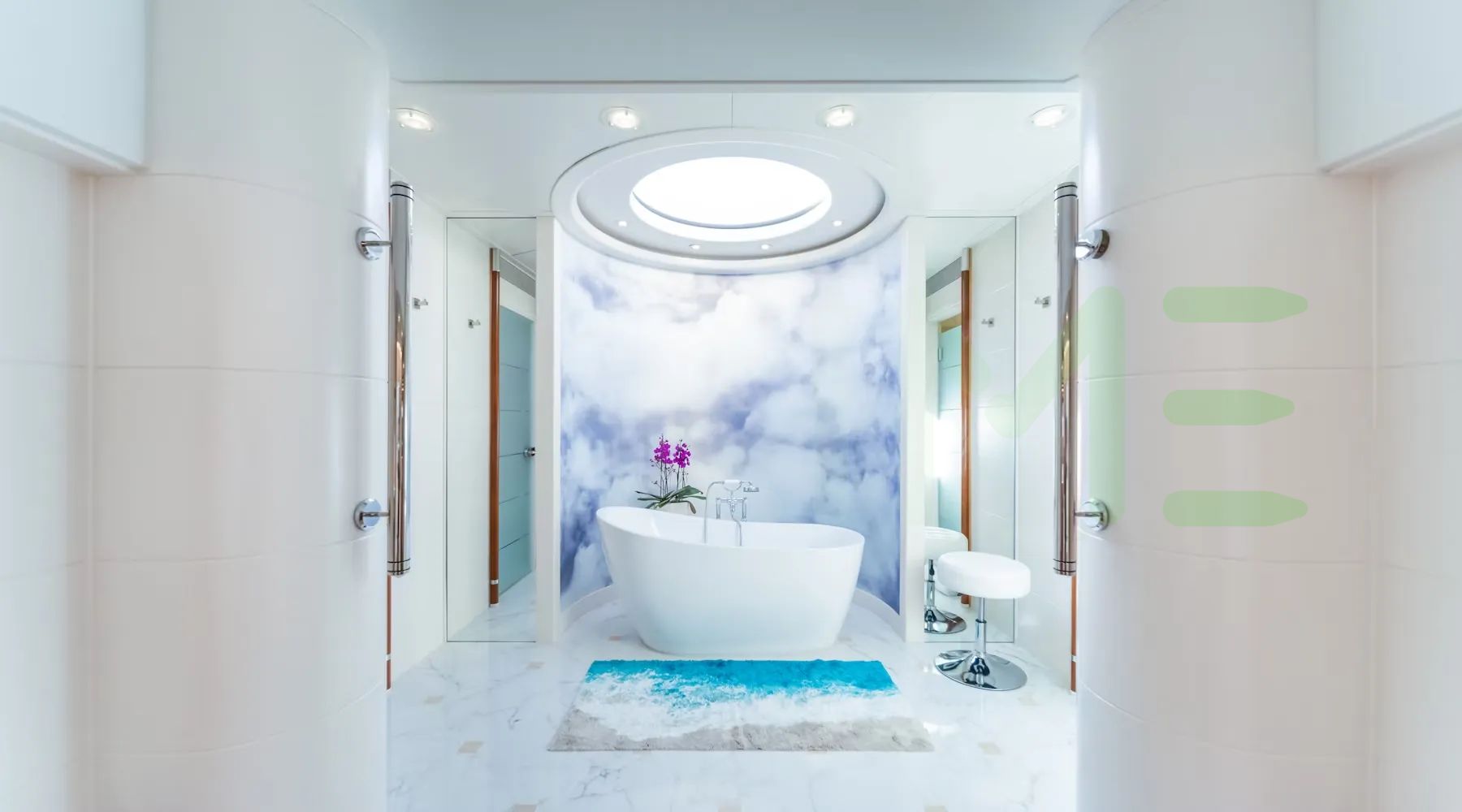 Her features include an elevator, gym, deck jacuzzi, WiFi and air conditioning.