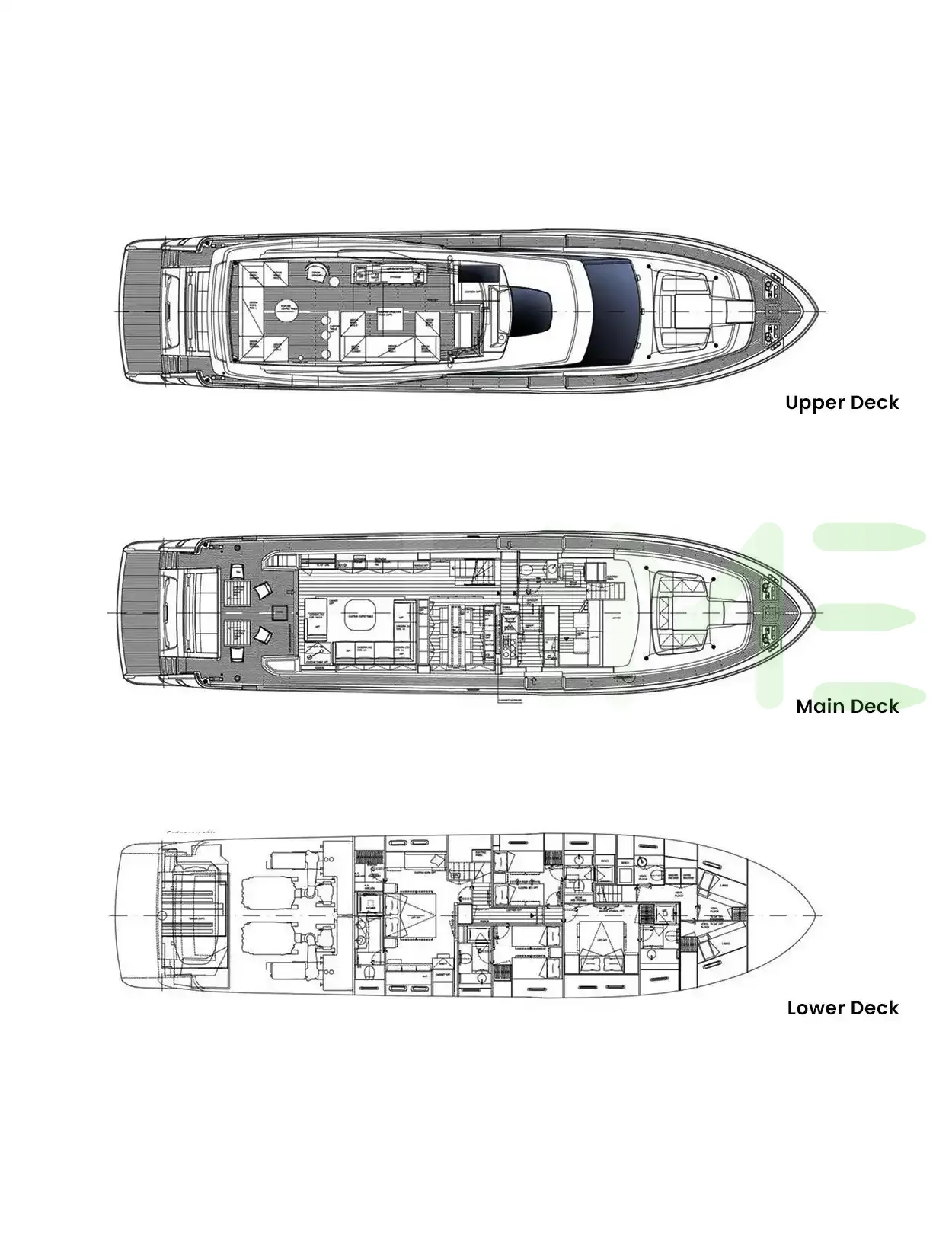 Request plans that include the layout of staterooms, guest areas, and outdoor spaces, as well as crew quarters and work areas.