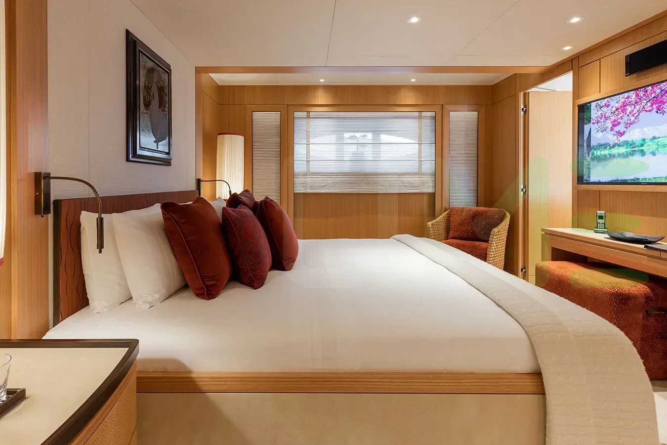 The styling of the VENTUM MARIS yacht features exterior design by Tim Heywood Design Ltd. and interior design by Winch Design. Up to 12 guests can be accommodated on board the superyacht VENTUM MARIS in 7 staterooms. VENTUM MARIS also has accommodations for 18 crew members, including the yacht’s captain.