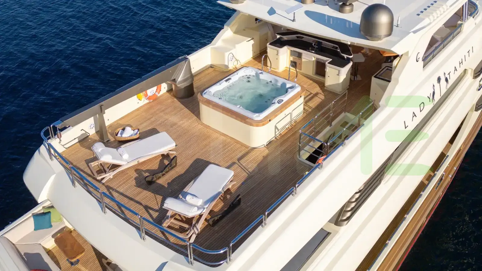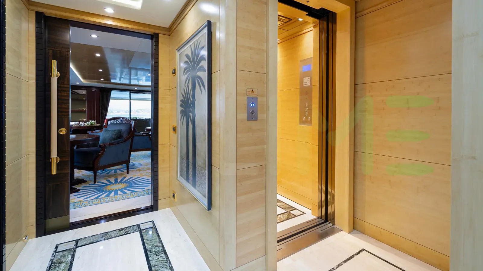 Her features include an elevator, deck jacuzzi, WiFi and air conditioning.