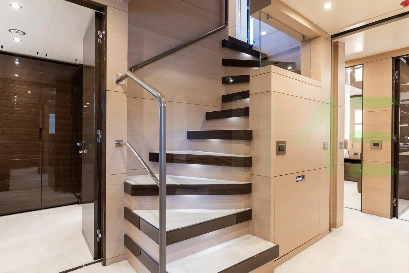 The styling of the WABASH yacht features exterior design by Stefano Righini Design and interior design by Zuretti Interior Design. Up to 10 guests can be accommodated on board the superyacht WABASH in 6 staterooms. WABASH also has accommodations for 8 crew members, including the yacht’s captain.