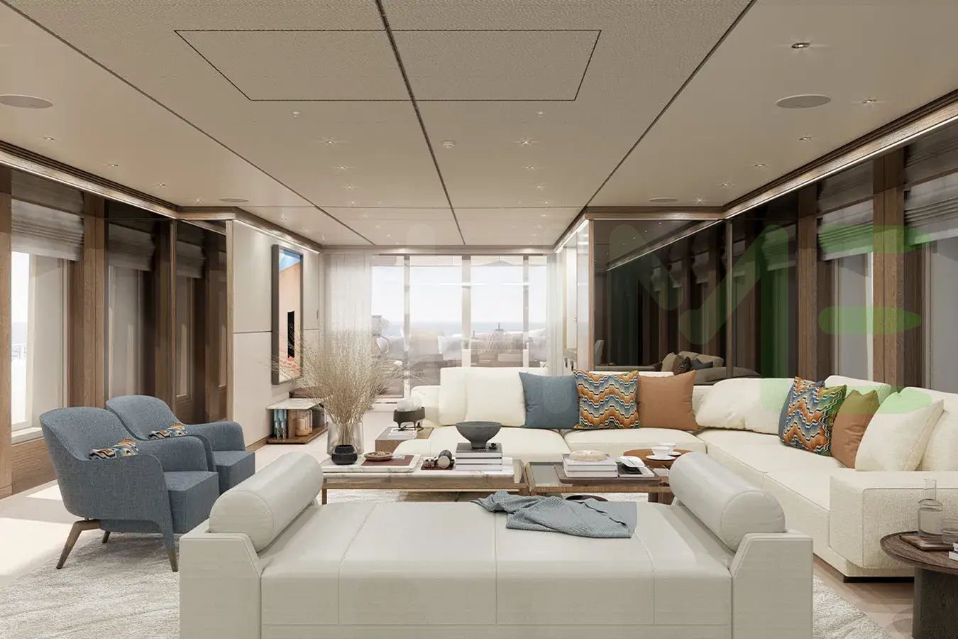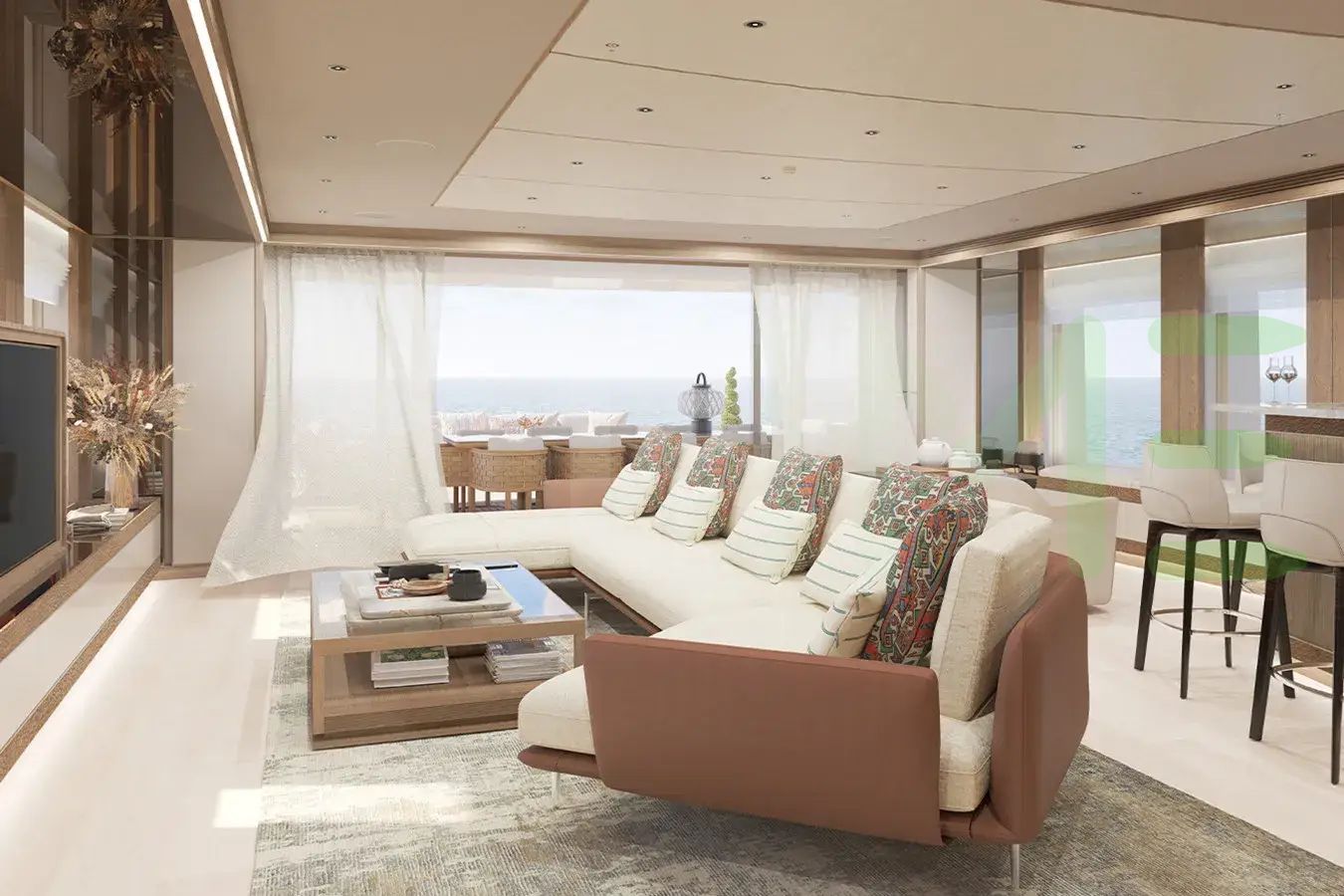 The styling of the WARDA yacht features exterior design by Omega Architects and interior design by Luca Dini Design & Architecture.
