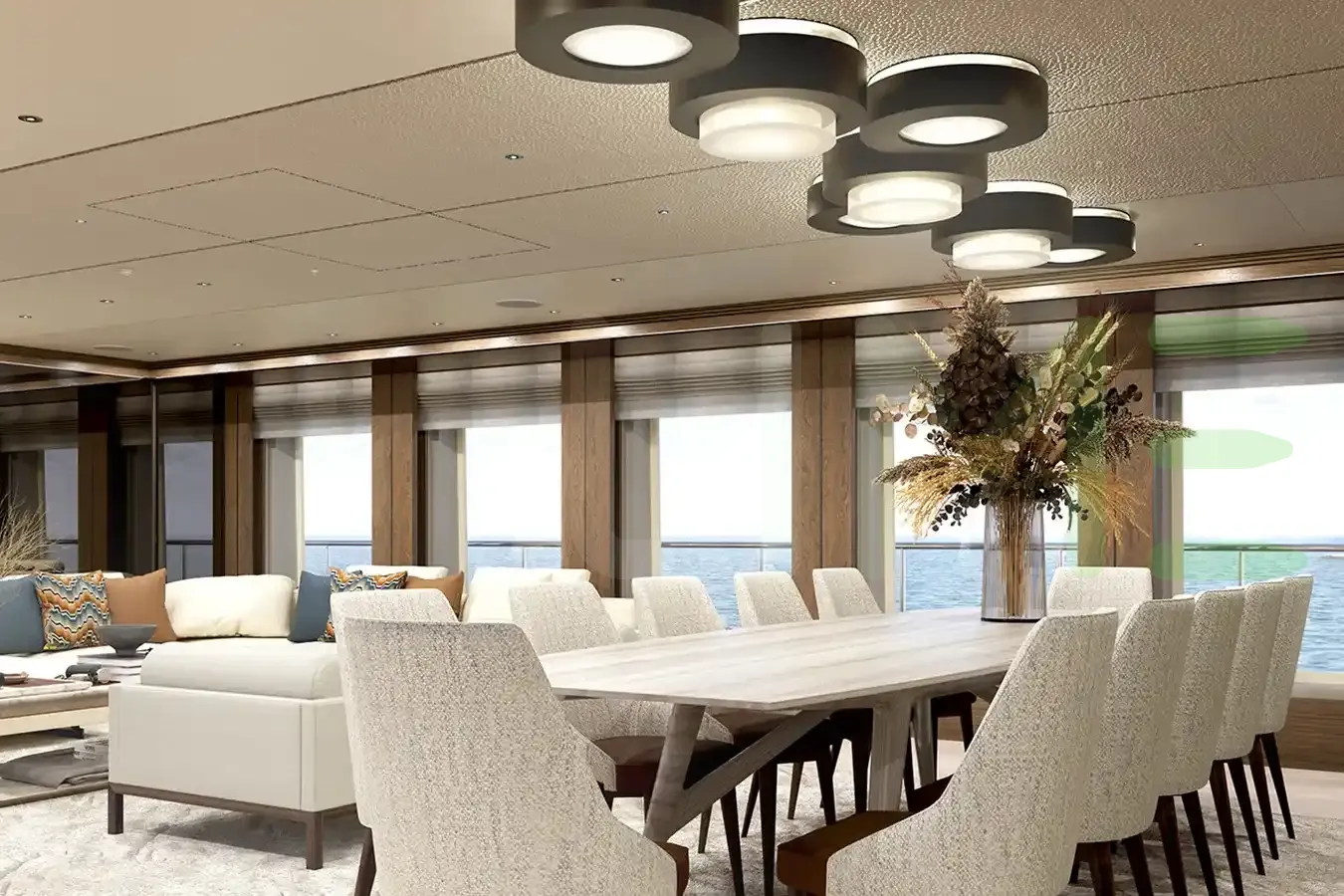 The styling of the WARDA yacht features exterior design by Omega Architects and interior design by Luca Dini Design & Architecture.