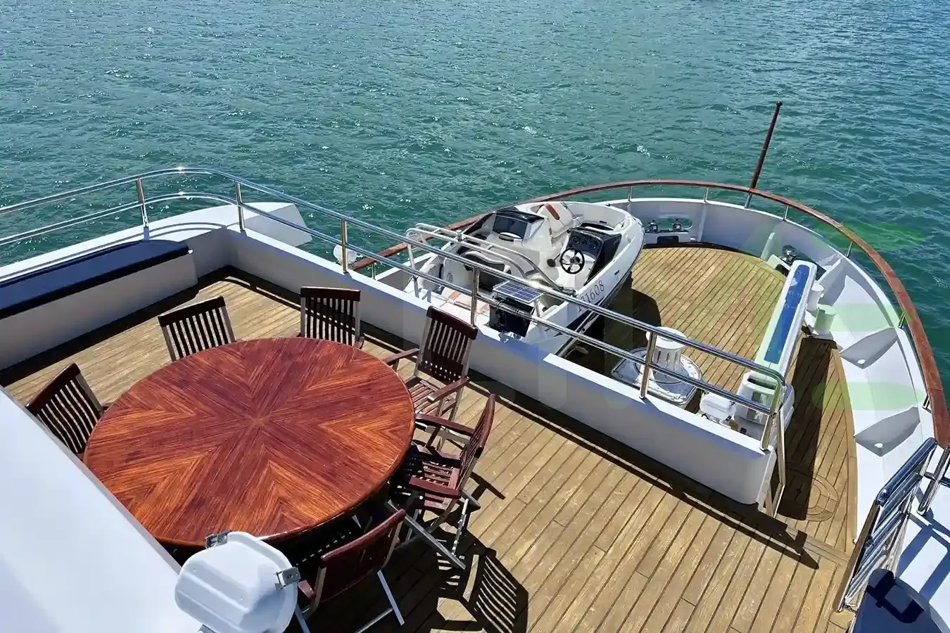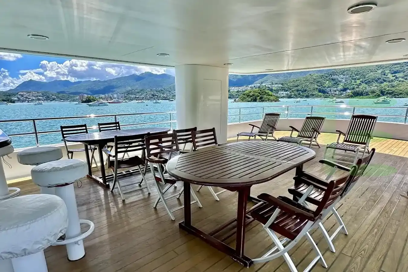 Constructed with a Steel hull, and Steel superstructure, she offers ample exterior and interior space.
