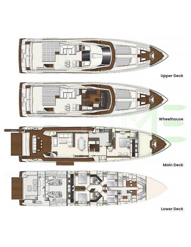 Request plans that include the layout of staterooms, guest areas, and outdoor spaces, as well as crew quarters and work areas.