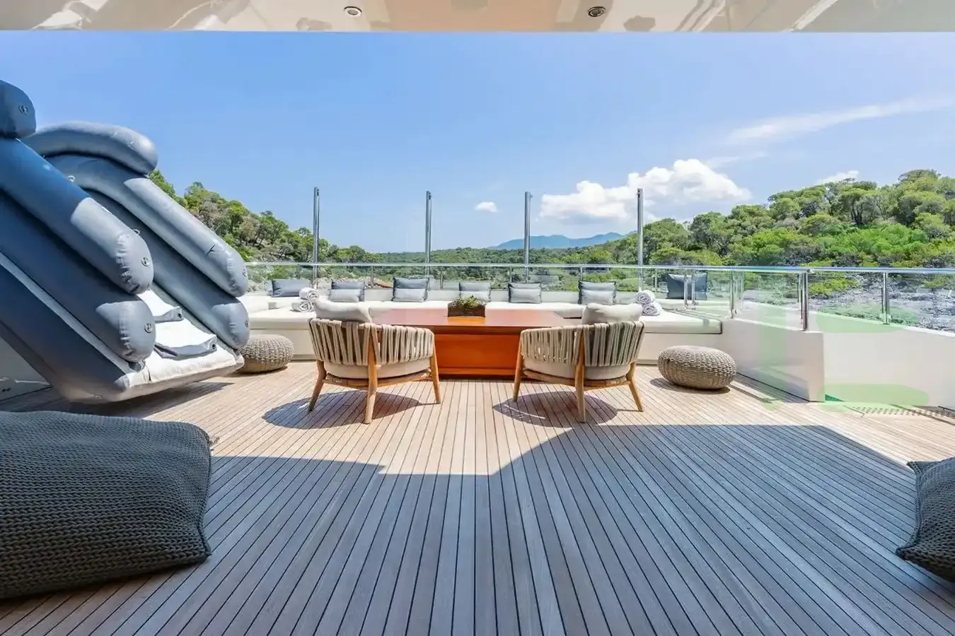 On your charter, you'll find plenty to keep you busy and entertained such as a gym with all the latest equipment to maintain your fitness routine. Soak up the bubbles in style in the deck jacuzzi.